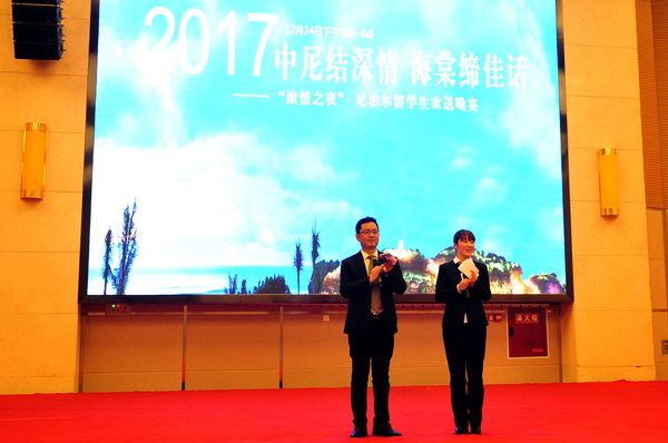 On the afternoon of December 24, 2017, the graduation ceremony for the 2017 class of Nepalese international students at Leshan Vocational and Technical College was held at the Jin Haitang Grand Hotel in Leshan. In attendance were President Liu Zhong of the college, representatives from the Jin Haitang Grand Hotel and Emei Century Sunshine Grand Hotel where the international students had completed their internships, Director Huang Xiaoli of the International Cooperation and Exchange Office, and Secretary Tan Hong of the Tourism Department. The ceremony began with a documentary showcasing the Nepalese students' journey of learning, interning, and living in Leshan.