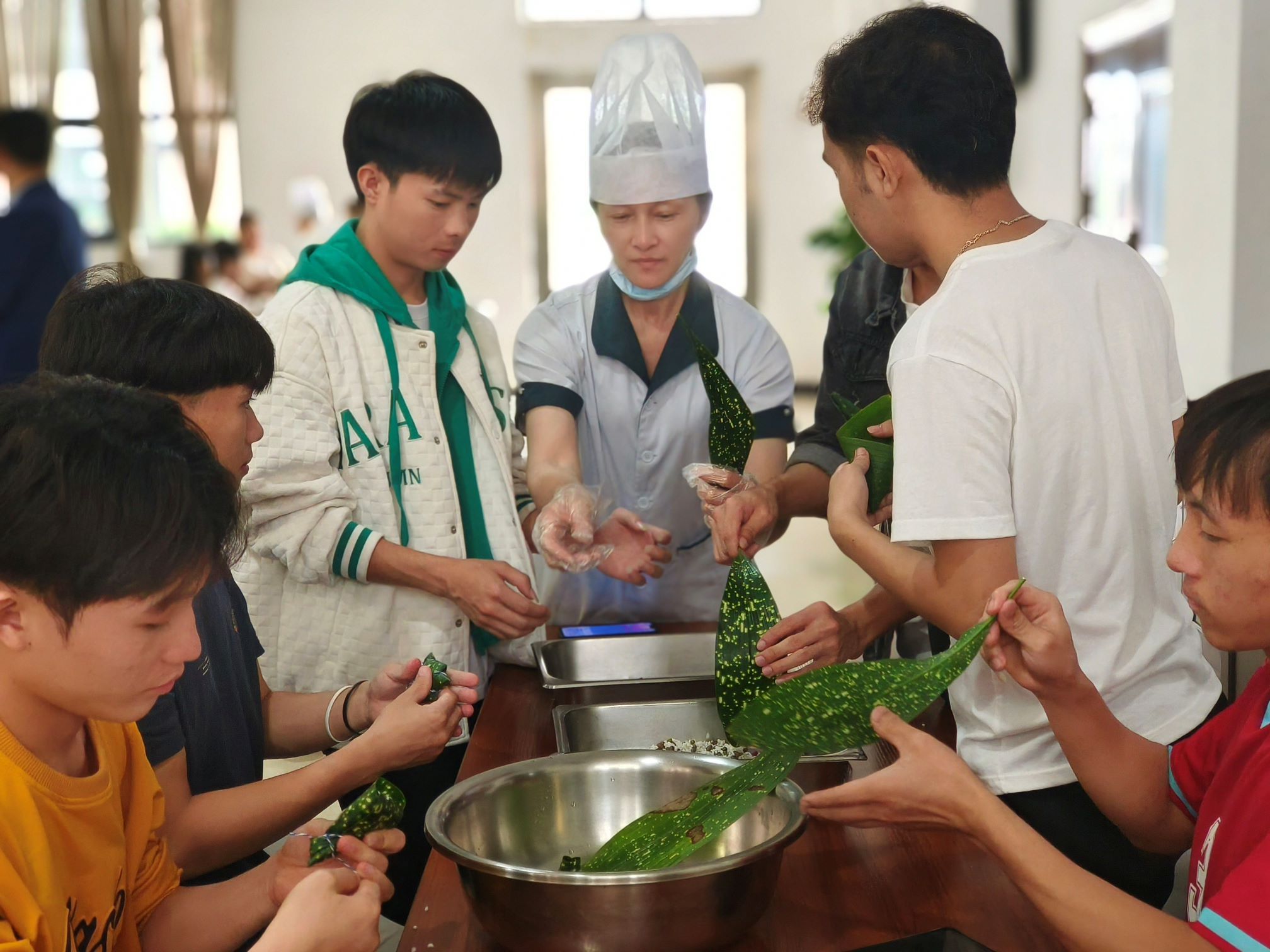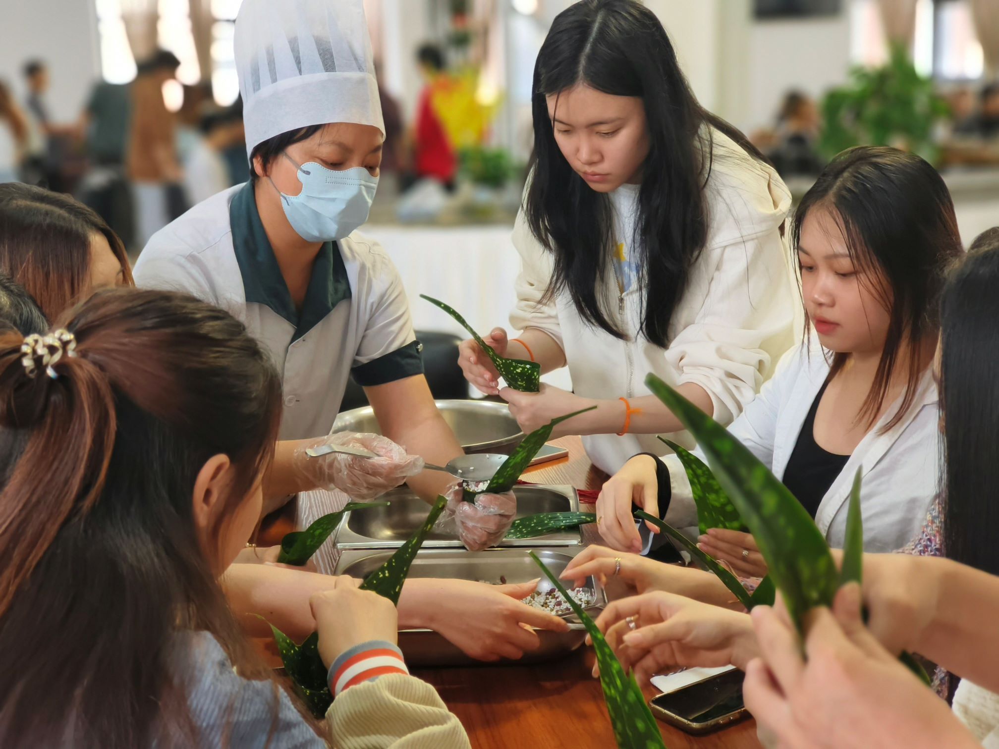 To help international students at our school experience Chinese traditional culture and the Dragon Boat Festival, on the afternoon of June 7, 2024, the "Zongzi Emotion, Silk Road Resonance" Dragon Boat Festival cultural experience event was held at the school's academic exchange center, organized by the international cooperation office, logistics department, school youth league committee, and student affairs office.