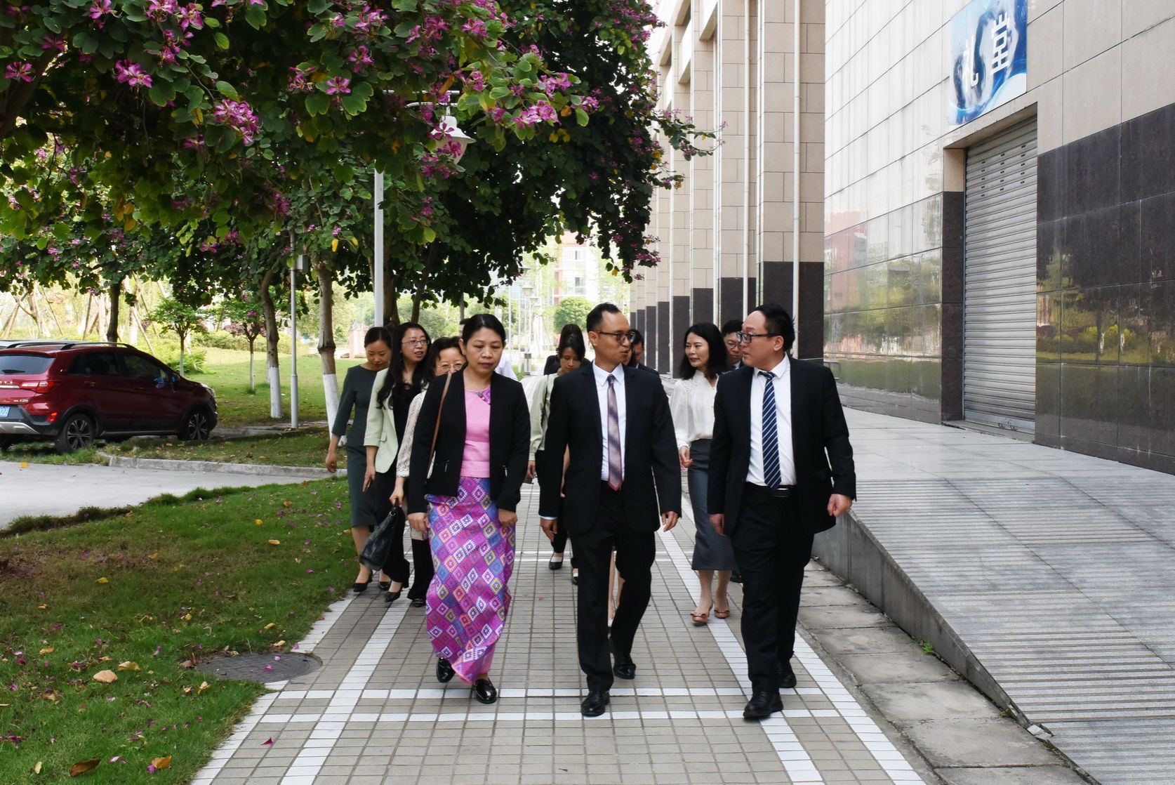 On the morning of April 17, 2023, the Consul General of Myanmar in Chongqing, Lu Zhencai, and his delegation visited the college, accompanied by Chen Yingli, Deputy Director of the Leshan Municipal Bureau of Economic Cooperation and Foreign Affairs. Cheng Dingbin, Secretary of the College Party Committee, Vice President Zhou Qin, and relevant heads of the Party and Government Office and the International College accompanied the delegation on a tour of the campus.