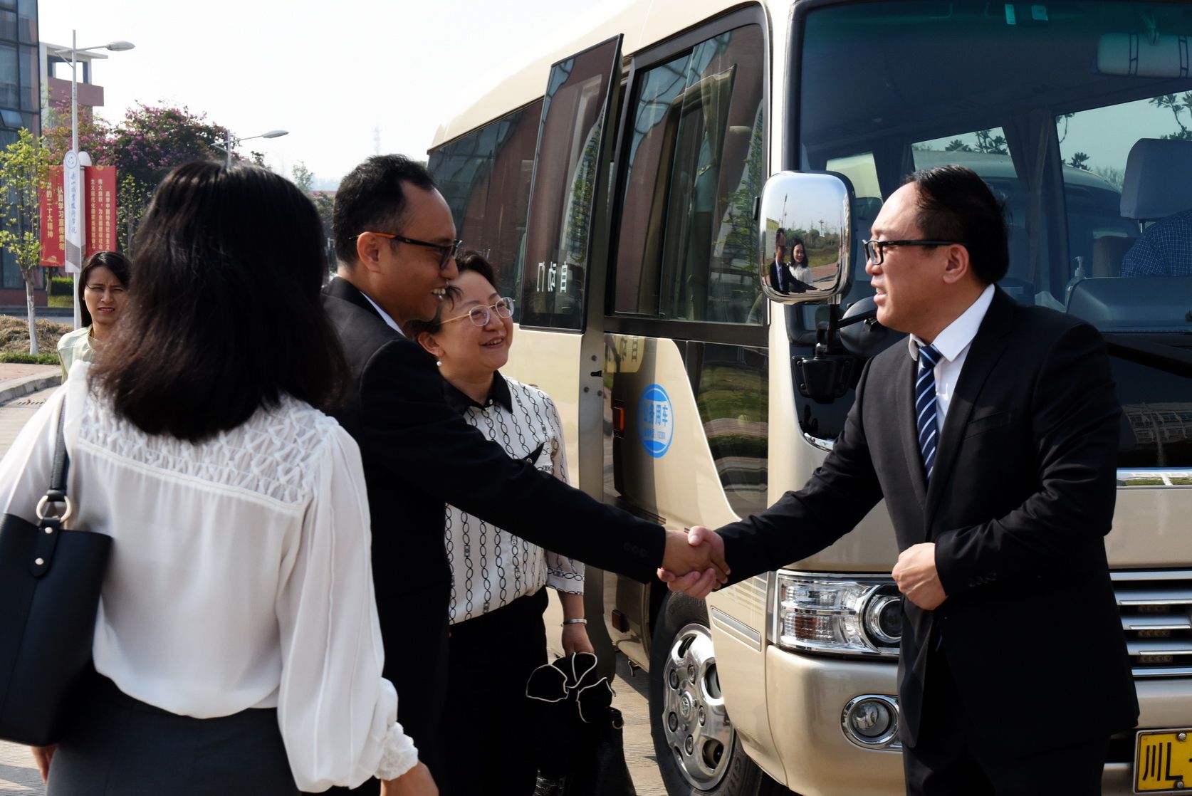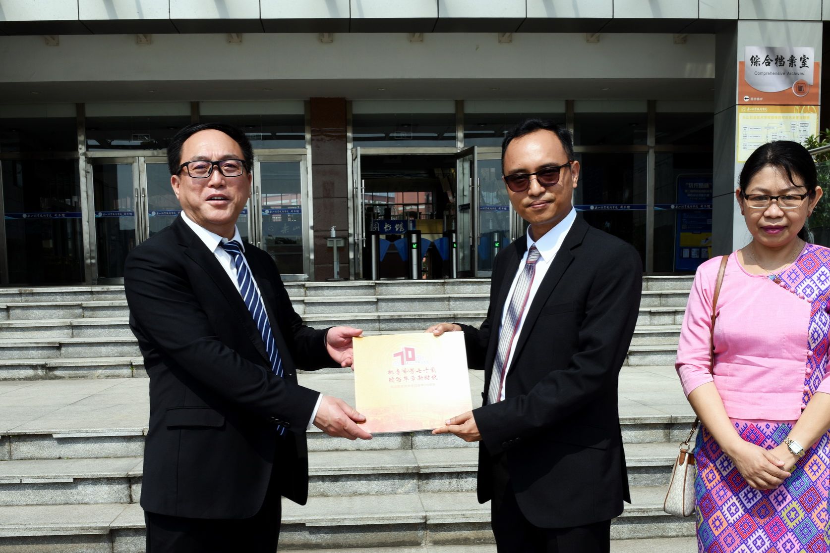 After the tour, Cheng Dingbin presented the Consul General with a commemorative album marking the college’s 70th anniversary. Both parties took a group photo in front of the library.