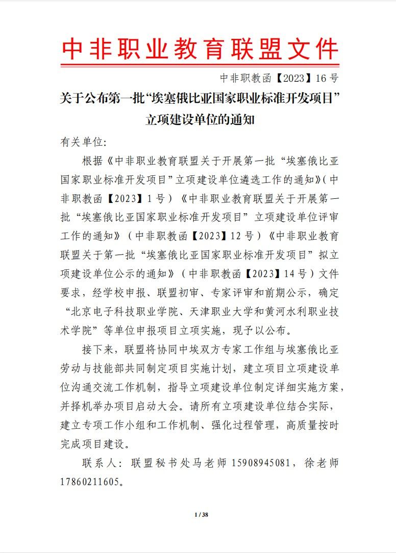 The "Ethiopian National Vocational Standards Development Project" is initiated by the Ethiopian National Vocational Education Commission to introduce Chinese vocational education resources. It focuses on key vocational skill positions in Ethiopia's national industries, selects an equivalent number of Chinese vocational standards, and revises them for localization. These standards are then registered and certified through Ethiopia's national procedures and incorporated into the Ethiopian National Vocational Education System, along with supporting professional teaching standards, to guide the talent cultivation work of vocational colleges in Ethiopia.