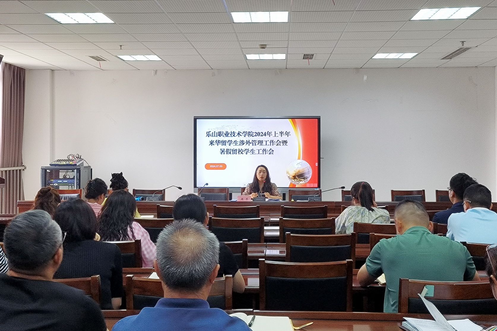 The meeting publicized policies and regulations related to the management of international students and foreign affairs, reported on the work situation of international students and foreign-related management in the first half of 2024, analyzed existing problems and typical cases in the work with international students, and put forward relevant suggestions. It also set requirements for the foreign-related management of international students during the summer vacation.