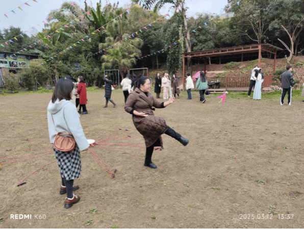 在2025年三八国际妇女节之际,我院工会根据学校乐职工【2025】03号文件精神,以“奋进新征程、巾帼展芳华”为主题,展示我院女职工活力和风采,促进教职工身心健康,关心关爱女职工,走出户外锻炼身体,营造和谐的集体氛围。护理康养学院全体职工于2025 年 3 月 12日在乐山市通江丽泰庄园开展了丰富多彩的庆祝三八妇女节的系列活动。护理康养学院现有女职工68名,活动当天以工会小组为单位组织了踢毽子、协力滚筒传球、羽毛球、团结击鼓等趣味比赛活动中,丰富了女职工业余生活。教职工们将以更好的精神面貌,团结奋进,积极投入学校高质量发展建设,展示了护理康养学院教职工良好的精神风貌。