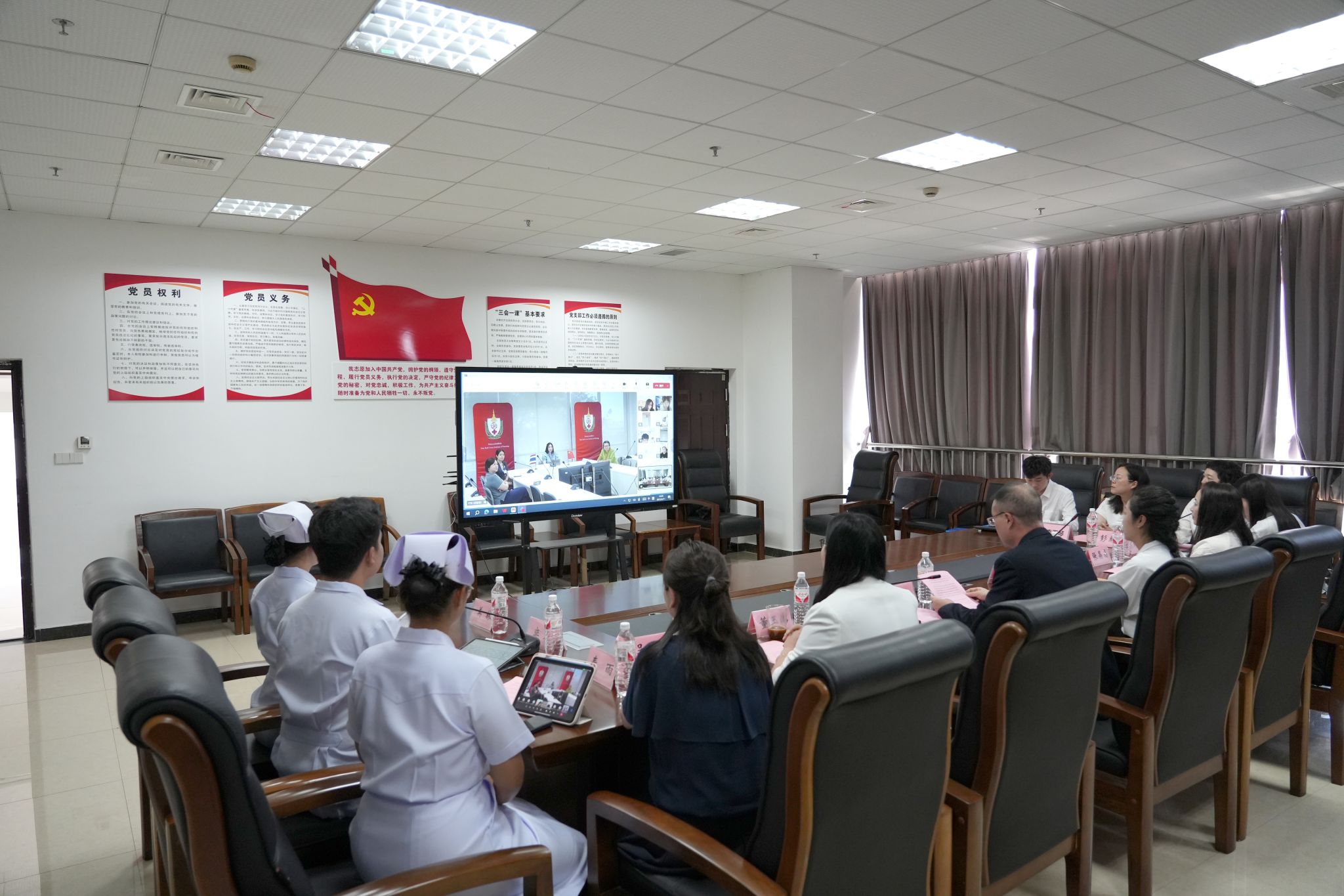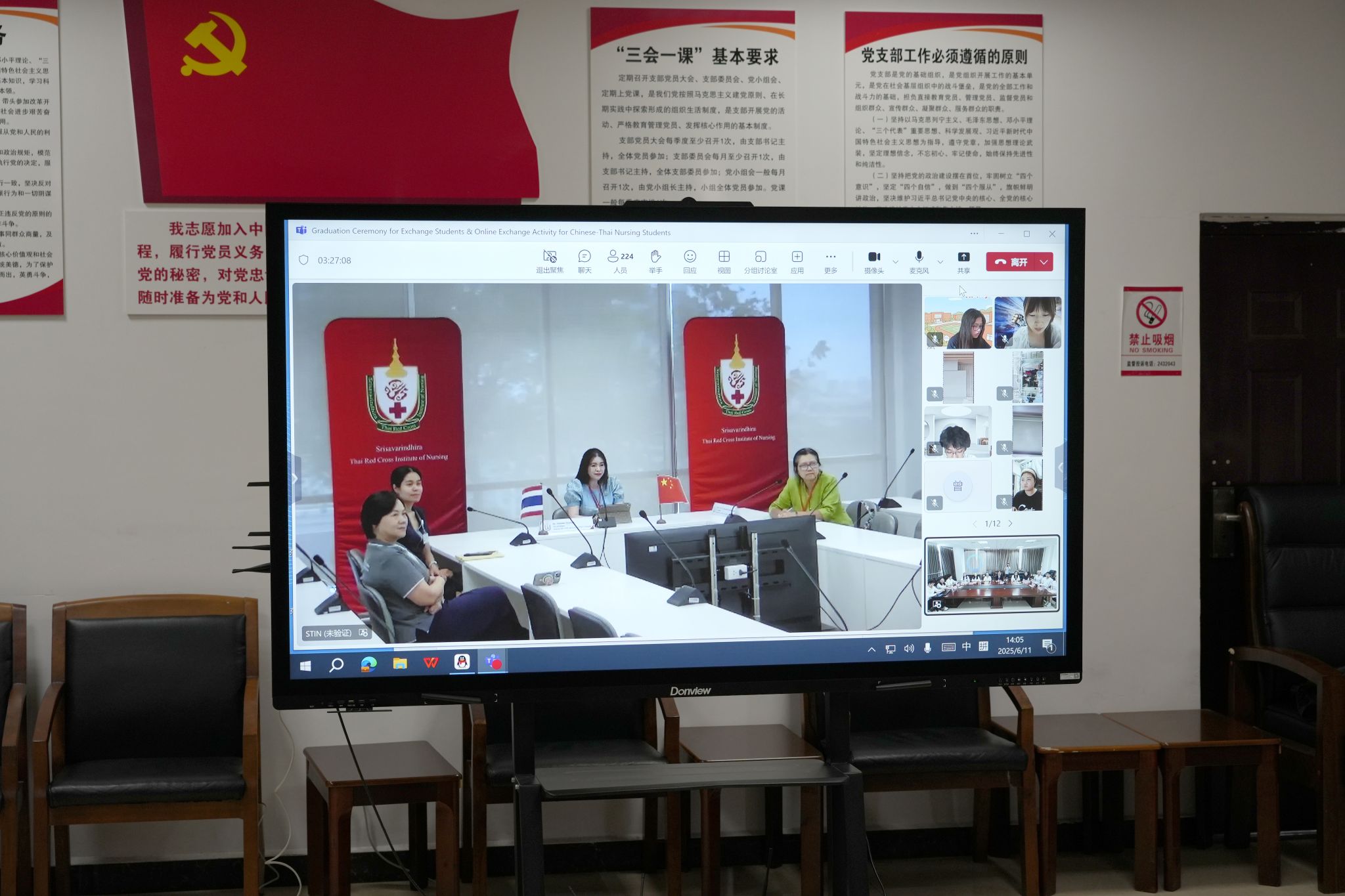 2025年6月11日下午14:00-16:30,泰国交换生结业仪式暨中泰护理专业学生线上交流活动顺利举办。beat365亚洲版官网校长刘忠,泰国红十字护理学院领导及教师代表,beat365亚洲版官网护理康养学院领导及教师代表,泰国交换生,两校护理专业学生共同参加此次活动。来自中泰两国的师生代表相聚云端,以专业为桥、以文化为媒,共谱护理教育国际交流新篇章。