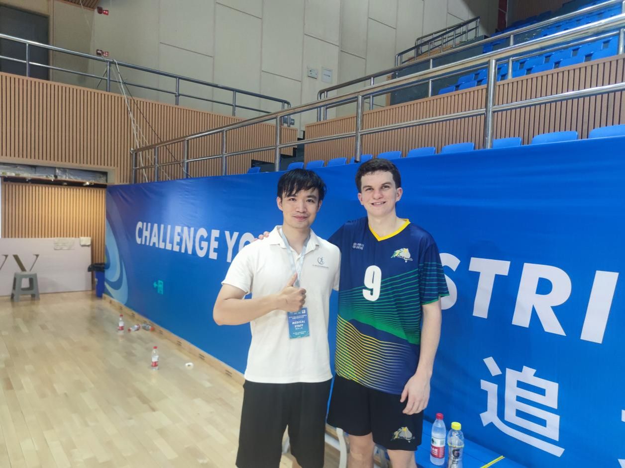 作为本次赛事指定的运动康复保障负责人,白熠皓老师带领医疗团队构建了多层次的运动员健康防护体系。在持续八天的赛事周期内,他与来自七个国家的运动员密切配合,针对高强度赛事特点制定了科学的三级康复干预方案。