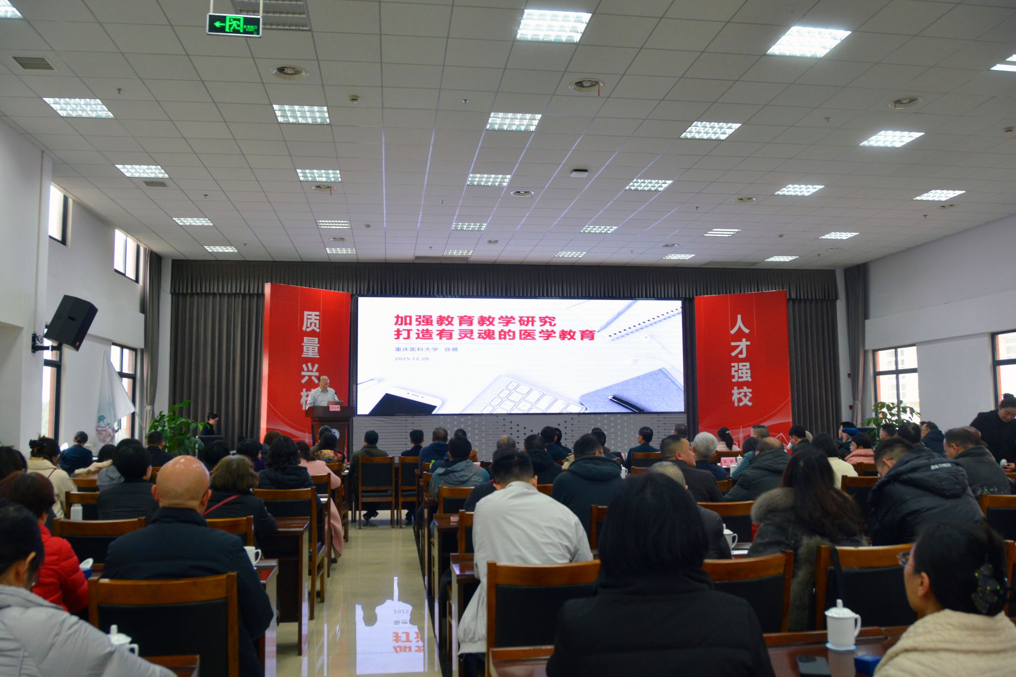 2025年12月20日,beat365亚洲版官网医学教育学术报告会在学术交流中心3004成功举办。本次报告会以“加强医学教育研究,打造有灵魂的医学教育”为主题,汇聚了省内外医学教育领域的专家学者、一线教师共110余人,大家齐聚一堂共同探讨医学教育的前沿趋势与实践路径。