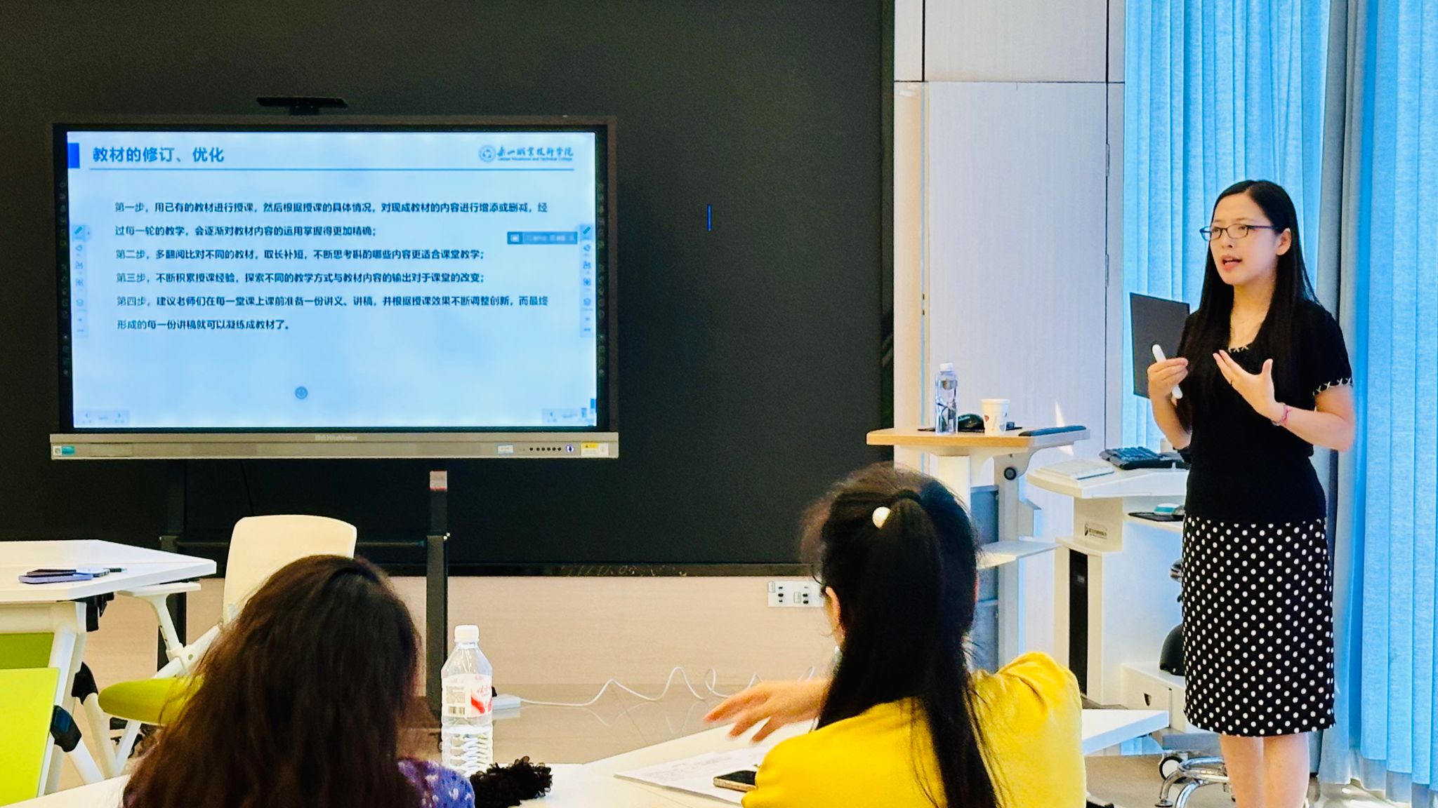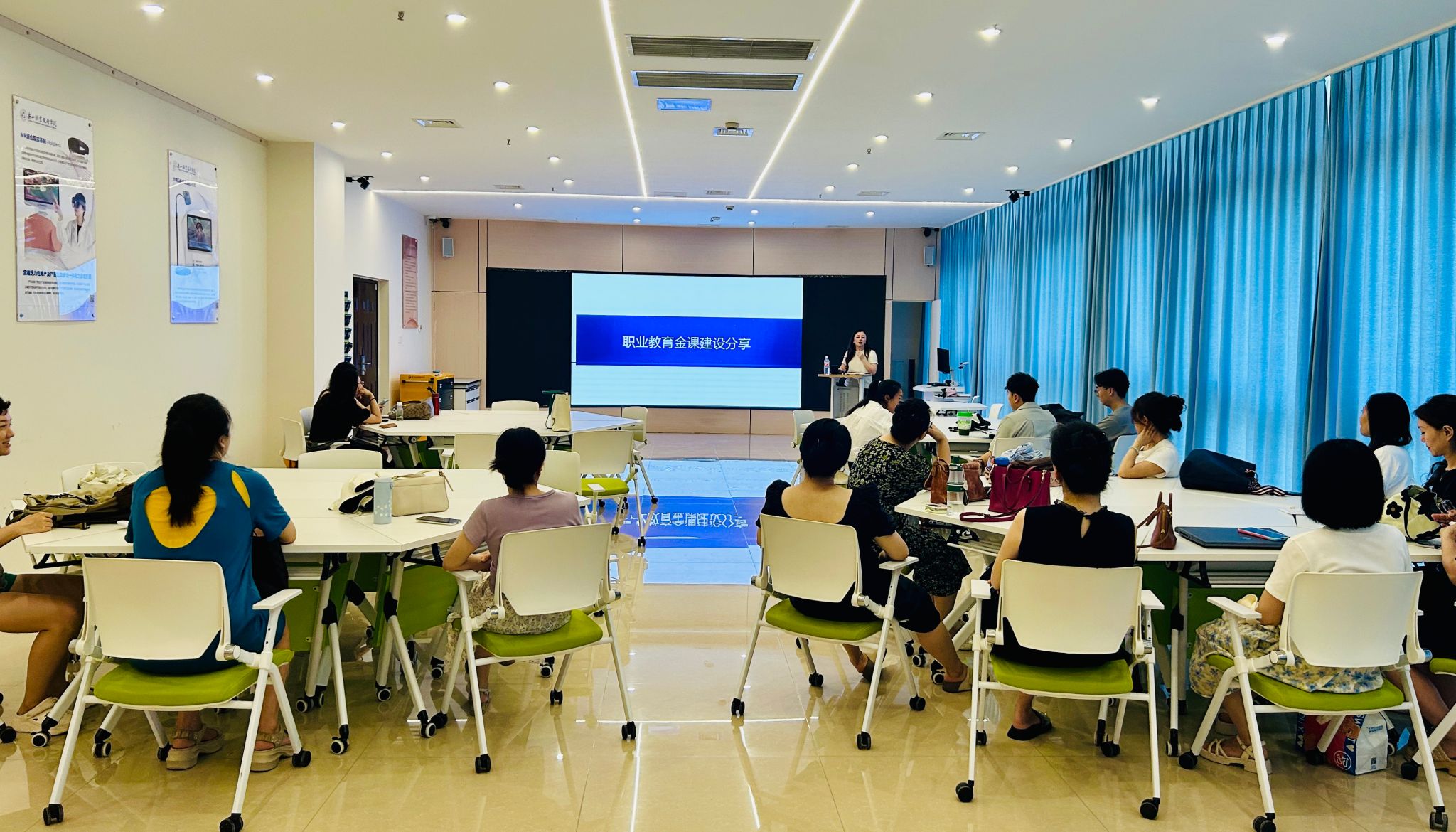 培训紧密围绕教学资料规范、教材开发建设、课程资源建设三大核心内容展开,采用理论讲座与互动研讨相结合的方式。在两天的时间里,教师们参加了多个专题培训,包括由彭瑶瑶、张巍主讲的教材建设培训,陈孜孜、陈曦主讲的在线开放课程培训,代琴、董玉洁主讲的课程思政与课堂革命典型案例培训,胡燕、罗昊主讲的金课与一流核心课程培训。此外,还专门安排了由周艳主讲的双创培训以及由张宇佳主讲的辅导员工作案例培训,覆盖了不同教师群体的需求。