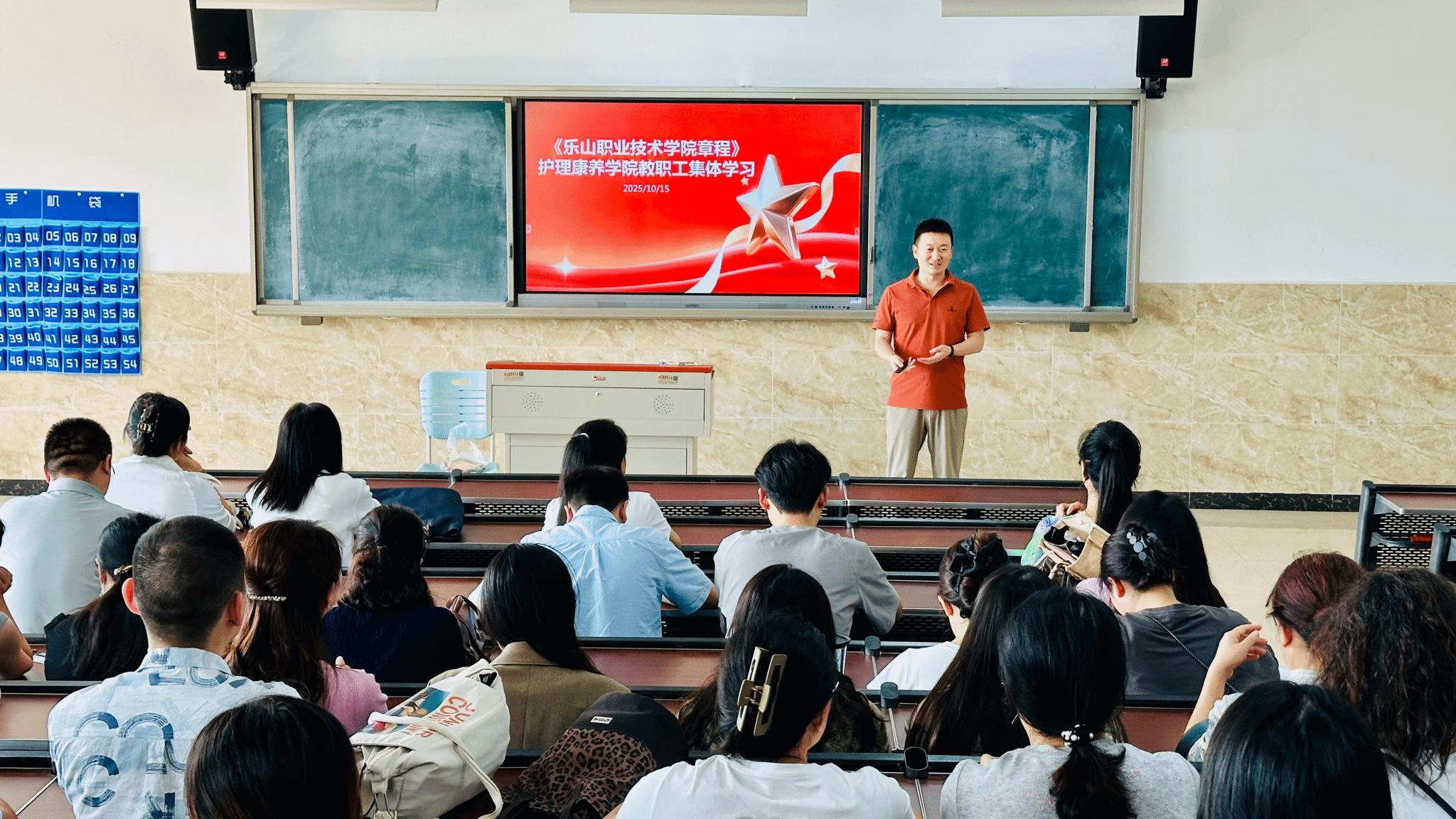 为深入推进依法治校,强化学院内部治理,提升全体教师的制度意识和规矩意识,2025年10月15日,护理康养学院在2C302教室组织开展了《beat365亚洲版官网章程》(以下简称《章程》)专题学习会。本次学习由学院分管教学副院长张磊领学,护理康养学院全体教师参加了学习。