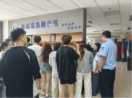 在活动过程中,通过仿真毒品模型展示、科普展板讲解及情景模拟体验,直观揭示吸毒与艾滋病传播的关联性。警务服务站蔡旭敏老师结合真实案例,剖析共用针具吸毒、高危性行为等引发HIV感染的风险,并现场演示安全防护措施,科普新型毒品伪装形式及毒品危害,强调“拒毒即防艾”理念,引导学生科学应对风险。