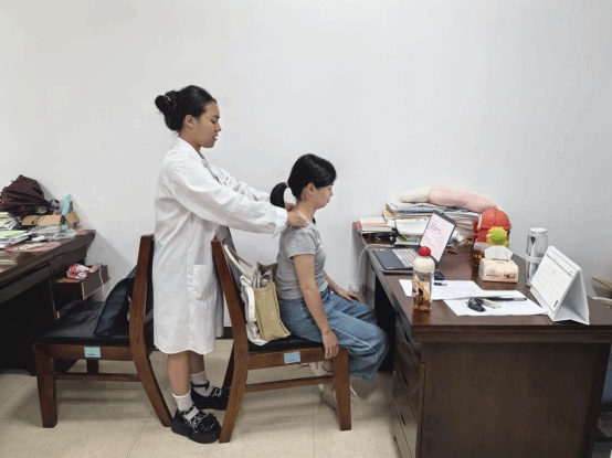 活动中,志愿者们走进各间教室,邀请教师体验免费按摩与血压测量服务。他们凭借专业手法,为教师缓解肩颈、腰部疲劳,同时细致测量血压,结合测量结果,耐心科普健康管理知识,提醒教师关注日常养生与疾病预防。