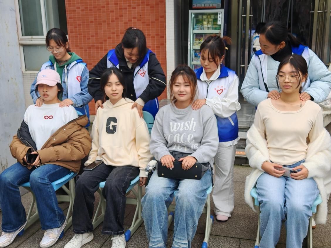 活动现场秩序井然,志愿者们分工明确、配合默契,以饱满的热情投入到各项服务中。免费血压测量区前,志愿者们细致记录数据,耐心解答师生关于血压健康的疑问;艾灸体验区内,淡淡的艾草香气氤氲飘散,志愿者们针对肩颈不适、疲劳乏力等问题,为身体不适的师生开展温和舒缓的艾灸调理,尤其关注长期伏案学习工作的师生,精准缓解其肩颈酸痛困扰;按摩区里,志愿者们运用课堂所学的推拿手法,动作娴熟、力道适中,精准揉捏穴位,让每位体验者都倍感放松,连连称赞 “手法专业,太舒服了”。