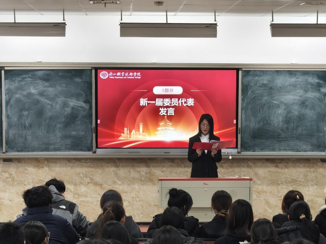 会上,主持人宣读《护理康养学院团委学生会委员选举办法》,全体代表秉持公平、公正、公开原则完成选举投票,同时听取并审议了 23 级团委学生会工作报告,为学生工作优化提出建设性意见。选举结果现场公布后,新一届团委及学生会委员名单正式宣布,新任委员代表表态将以高度责任感履职,结合专业特点开展特色活动,切实为同学办实事。
