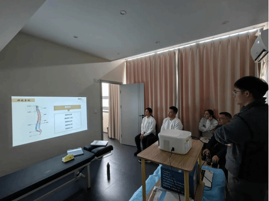 服务期间,白熠皓与康复中心专家围绕“青少年特发性脊柱侧弯康复”“膝关节韧带术后重返运动”等复杂病例展开联合研讨。他分享了学院在动态关节松动术、神经肌肉激活技术(NEAT)等领域的教学成果,同时汲取了中心在运动心理干预、数字化康复评估等临床经验。通过这种“教学-应用”双向赋能实现了教用相长,推动了产教融合。