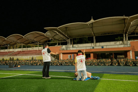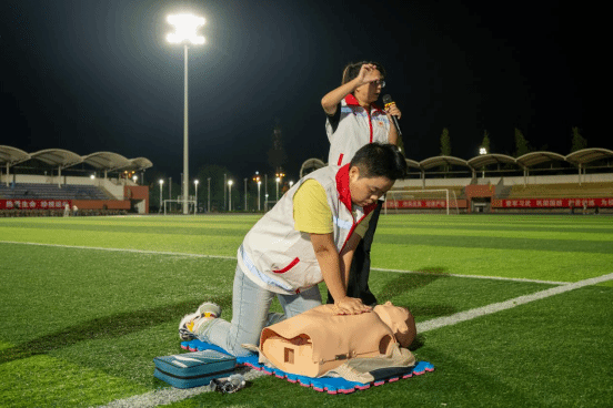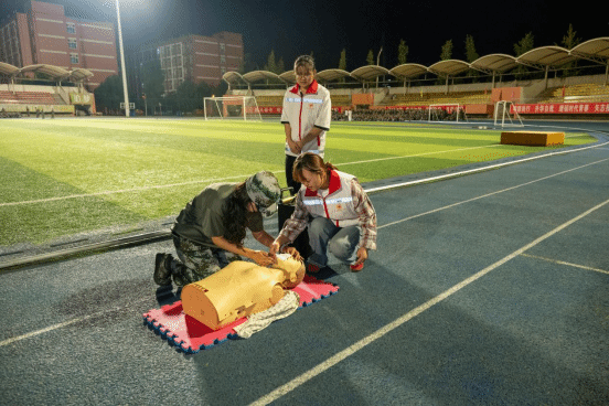 2025年9月23日晚20时,beat365亚洲版官网主操场灯火通明,一场以"生命教育·救在身边"为主题的应急救护知识普及培训活动在此举行。本次活动由学院红十字会主办,旨在贯彻落实《健康中国2030规划纲要》,将红十字"人道、博爱、奉献"精神深度融入新生入学教育。护理康养学院党总支副书记吴丽虹、副院长张磊亲临指导,8名持证应急救护培训师带领20余名学生志愿者,为2025级全体新生带来一堂生动的生命教育课。