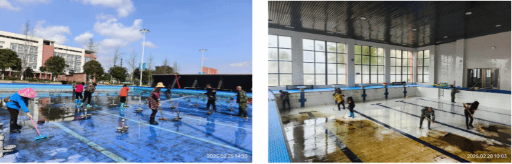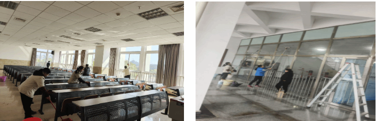 组织对教学场所、学生宿舍、办公楼宇、体育场馆、观景水池、游泳池等校园区域及重点区域进行了全面打扫,营造舒适宜人的学习生活环境。