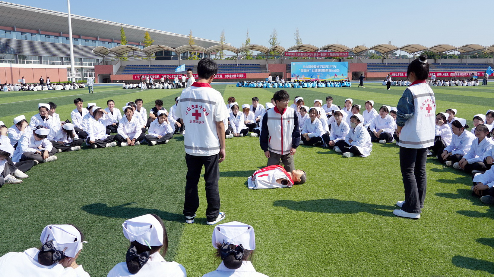 开幕式后,学校红十字会成员开展了心肺复苏(CPR)技能培训,为运动会顺利进行提供有力的安全保障。