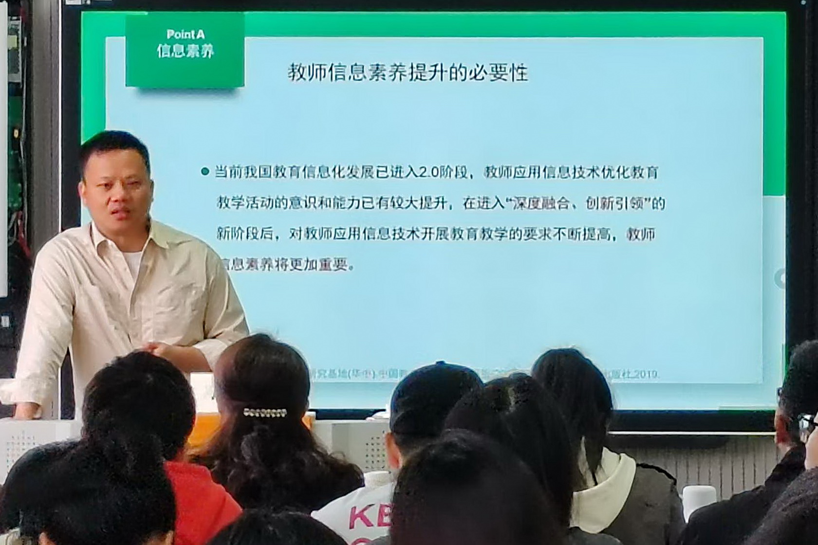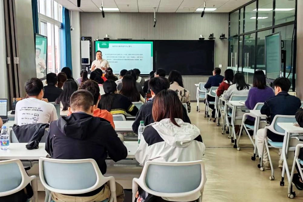 培训聚焦教师运用人工智能与数字工具进行教学设计和内容创作的能力,吴长城重点介绍了人工智能生成内容(AIGC)技术在教育领域的应用,尤其是“副驾模式”下人类与AI的协作。AI作为教师的智能助手,可协助完成教学设计、资料搜集和内容创作等工作。培训还介绍了微课和短视频的制作技巧,讲解了如何利用相关软件工具提高教学内容的吸引力和互动性。参训新教师通过实践操作对数字化教学有了更深入的理解和掌握。