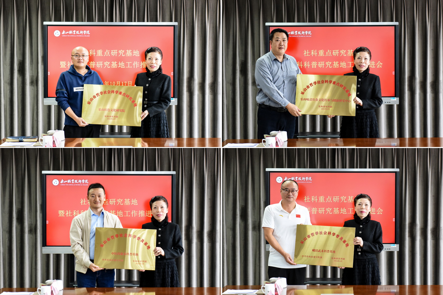会上,刘其昕为学校2023年获批的市级科研基地、社科科普研究基地授牌并对基地下一步工作提出了意见和建议。会后,刘其昕一行参观了中医药康养科普基地、峨眉武术科普基地。