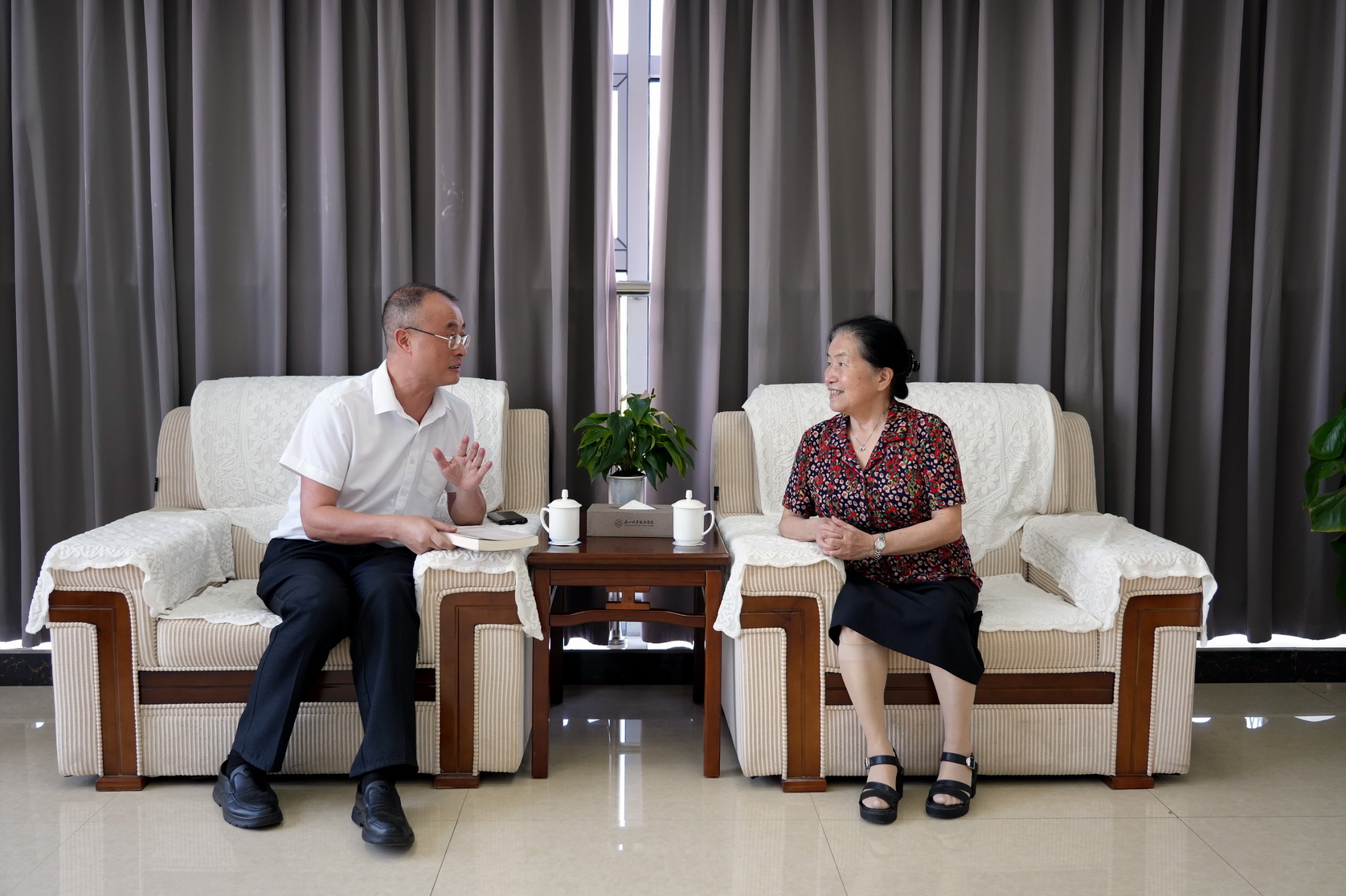 在校长接待室,刘忠与王琪就相互关心的问题进行了深入交流。