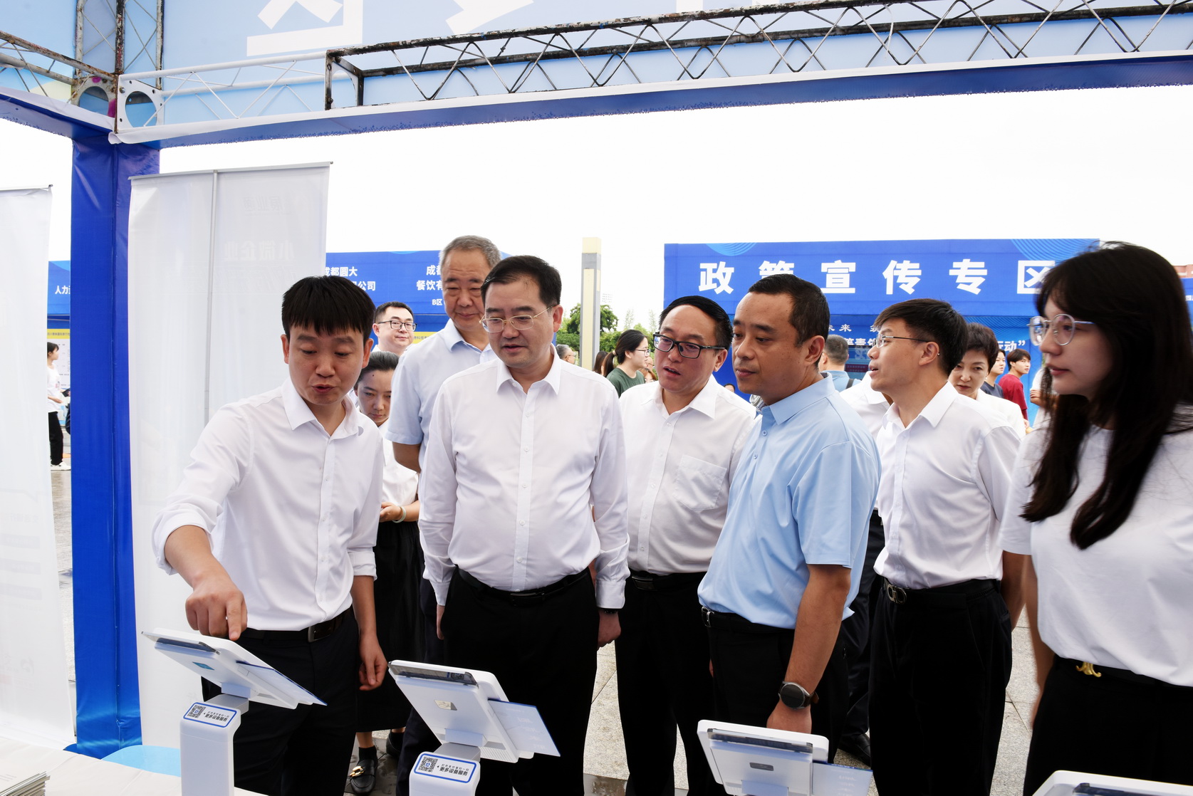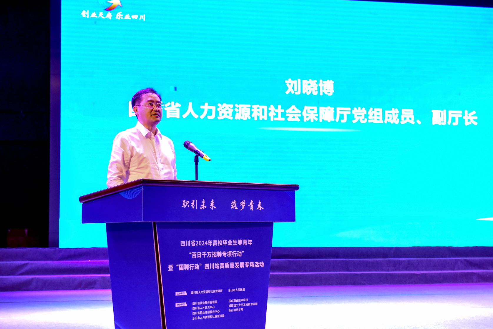 6月27日上午,四川省2024年高校毕业生等青年“百日千万招聘专项行动”暨“国聘行动”四川站高质量发展专场活动启动仪式在beat365亚洲版官网举行。四川省人力资源和社会保障厅党组成员、副厅长刘晓博,四川省就业服务管理局党委书记、局长王祎,乐山市委常委、副市长王彦,beat365亚洲版官网党委书记成定彬,乐山市政府副秘书长张丽宾,乐山市人力资源和社会保障局党组书记、局长刘剑出席活动。来自乐山各高校的应往届毕业生参加了启动仪式和现场招聘活动。