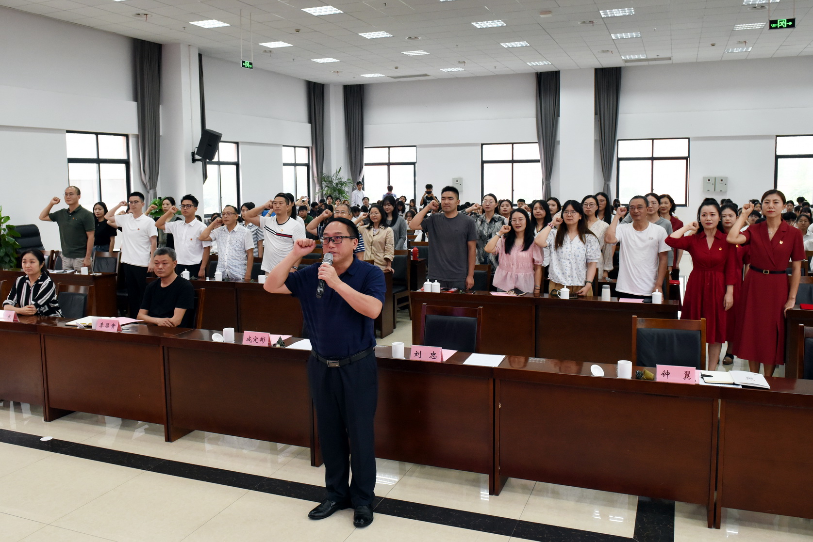 活动中,成定彬还带领马克思主义学院全体思政教师庄严宣誓,郑重承诺全面贯彻党的教育方针,严格遵循习近平总书记“六要”要求建好队伍,严格按照习近平总书记“六个相统一”要求把思政课的道理讲深讲透讲活。