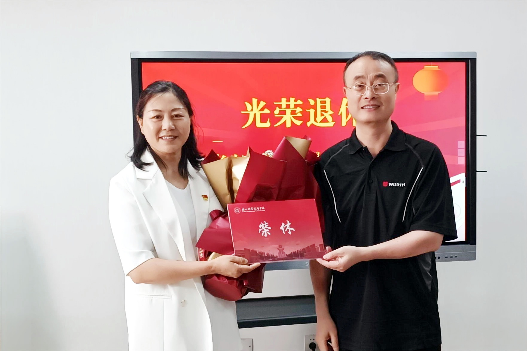 仪式上,刘忠为肖旭、梅淑先、姜腾东3位同志分别颁发荣休证书并献花。他表示,光荣退休是职业生涯的终点,更是人生幸福生活新的起点,他代表全体职工向3位同志的光荣退休表示热烈的祝贺,对他们为学校作出的贡献表示衷心的感谢。
