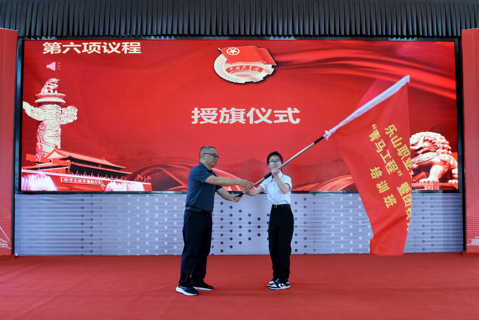仪式上,张学河为本期大学生青马骨干班授旗,培训班班主任宣读了本期青马班纪律条例,数字经济与管理学院学生何雨彤代表第十期青马班学员发言并领誓。