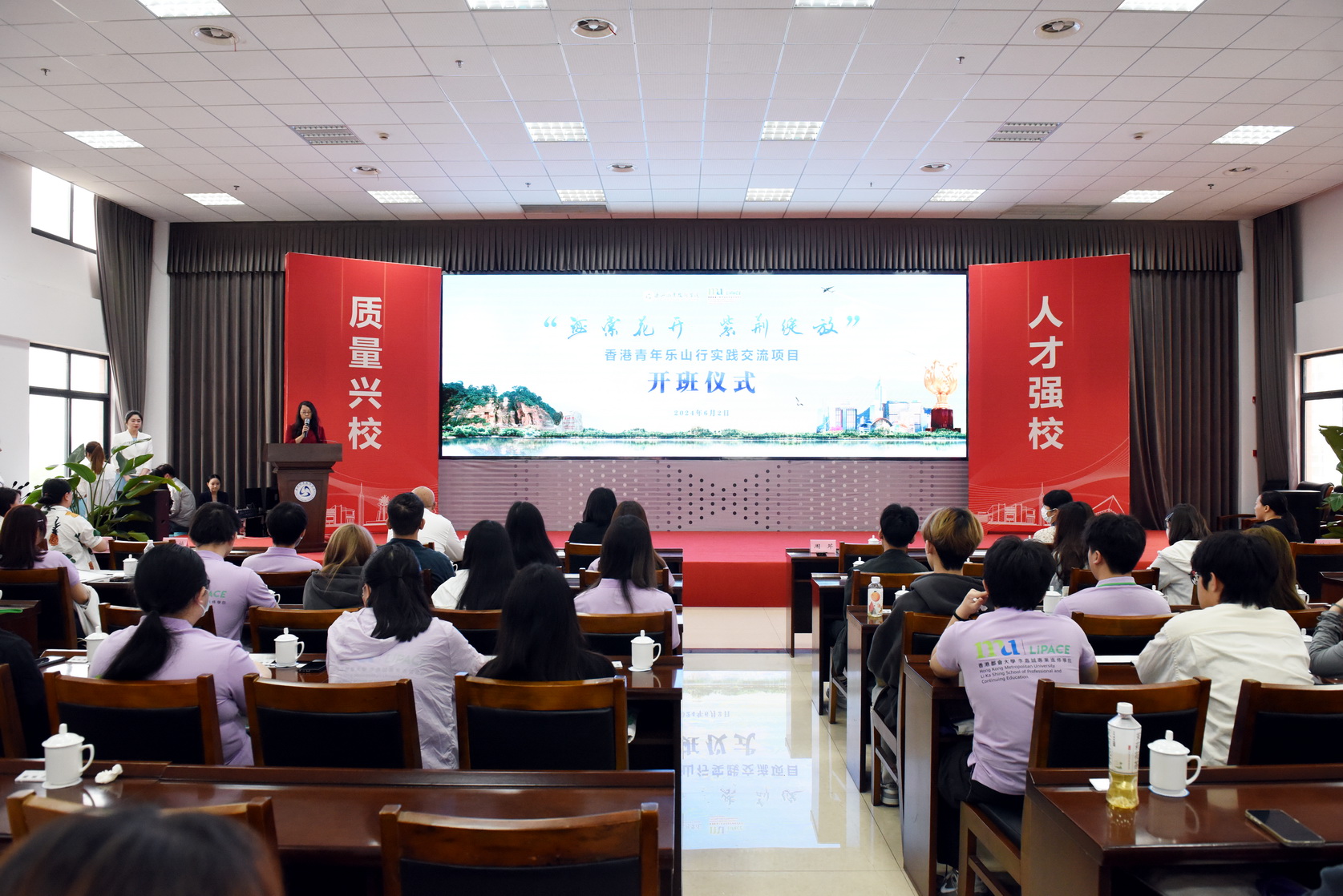周芹在启动仪式上致辞,热烈欢迎58名香港师生来乐山学习交流。她表示,本次学习交流活动是两校首次合作,愿两校携手努力,共同助力川港职教交流。希望香港交流学生在乐山实践学习交流中学到专业知识,体验不同地域的文化魅力,增进对祖国历史的了解和文化认同。