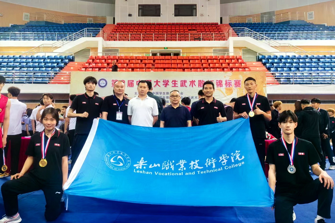 beat365亚洲版官网学生武术散打队第一次参加全国比赛,学校党委委员、副校长张学河带队参加比赛,为队员加油助威。同学们在比赛中不畏强手、沉着应战、勇于拼搏,充分展示了扎实的专业基础、良好的实战水平和乐职学子的精神风貌。最终,普专休闲体育23-2班学生韩欣莉获得乙B组女子51公斤级金牌、普专造价22-1班学生严志伟获男子乙B组60公斤级金牌、普专休闲体育23-1班学生袁钰林获男子乙B组56公斤级银牌、普专旅游22-3班学生范徐小龙获男子乙B组58公斤级第五名,代凌江老师获“优秀教练员” 、韩欣莉同学获“优秀运动员”,学校代表队获高职B组团体第七名,取得了学校在全国大学生体育比赛中的历史最好成绩。