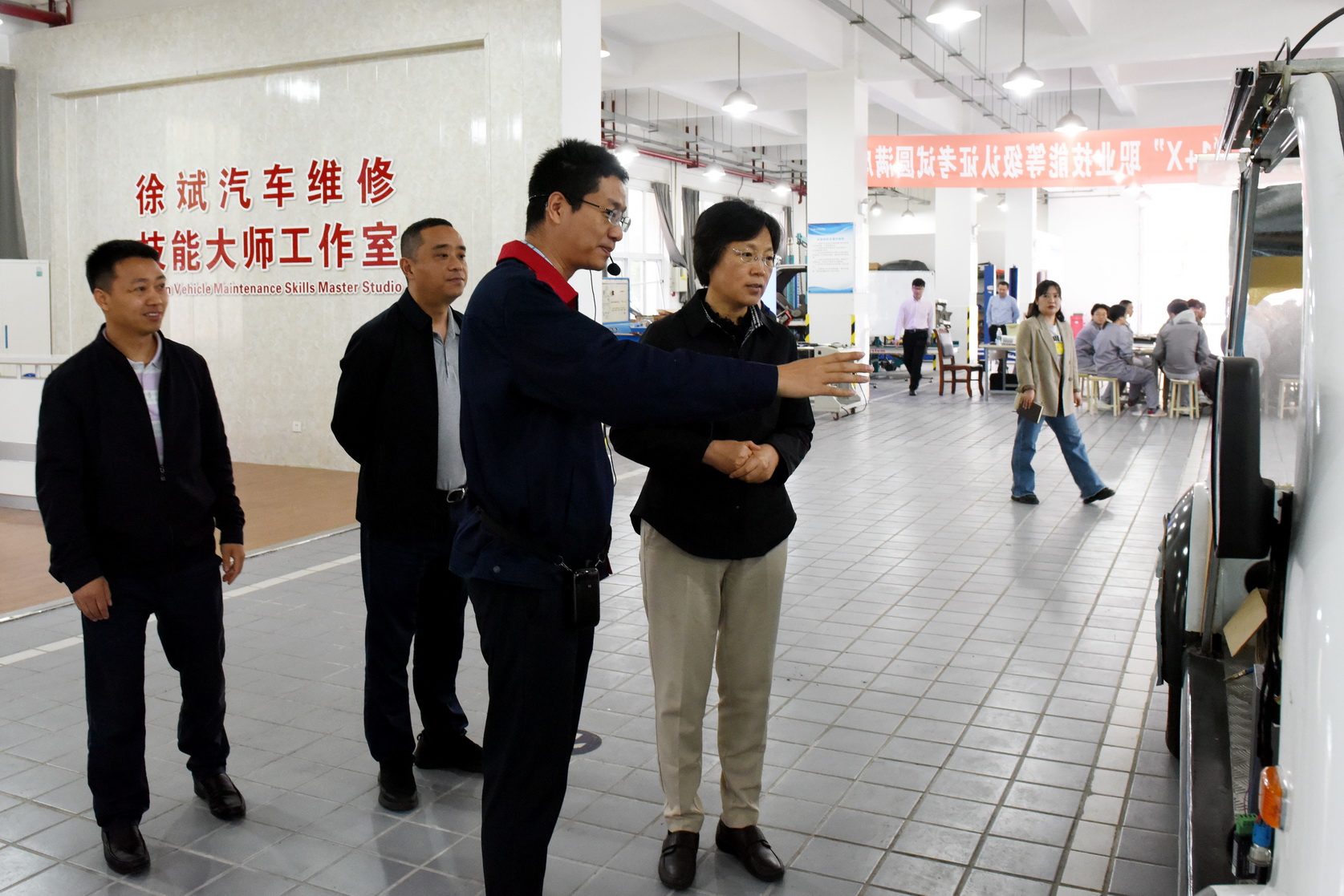 张丽宾一行参观了四川省徐斌技能大师工作室、四川省陈作越技能大师工作室,了解学校高技能人才队伍建设情况。随后参观了晶硅光伏产教融合实践中心,了解学校晶硅光伏人才培养和服务产业情况。