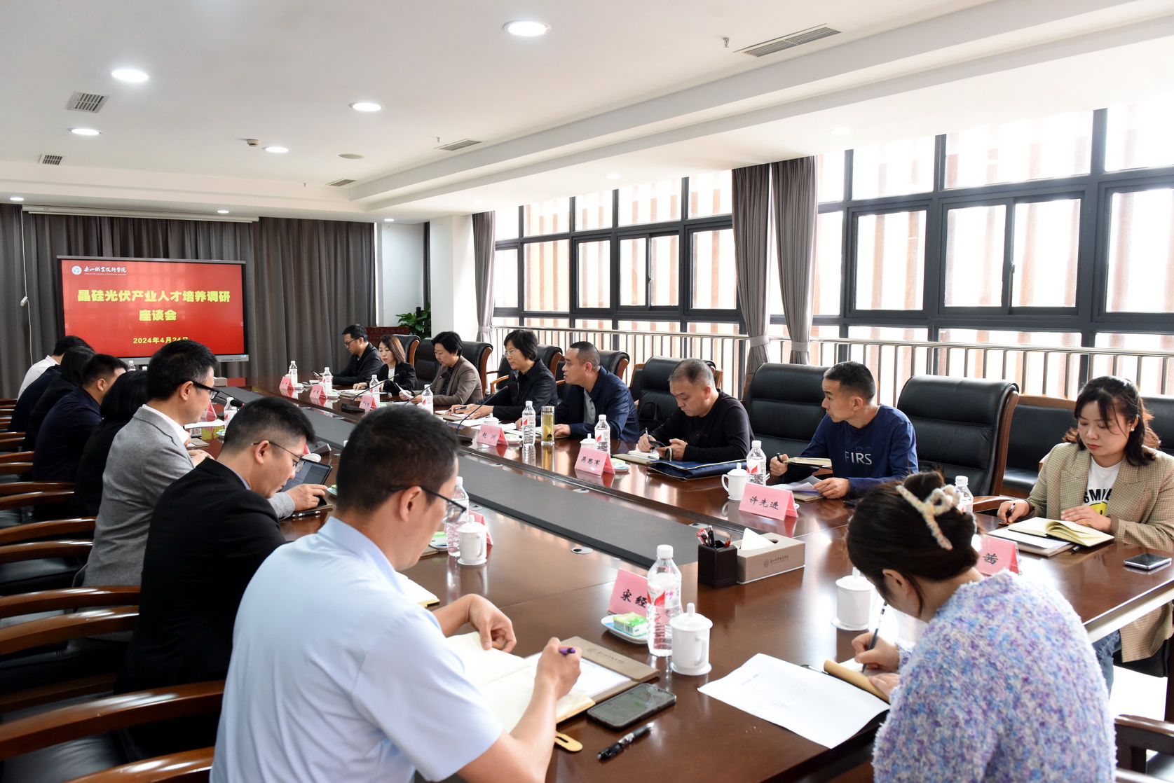 张丽宾高度认可了学校和各部门在晶硅光伏行业人才培养方面所做努力。希望各部门加强相互沟通连接,挖掘优势资源,在人才供需匹配、技能标准建设、技能人才培训、产教融合等方面做出创新,为乐山晶硅光伏产业的稳步发展作出更大贡献。