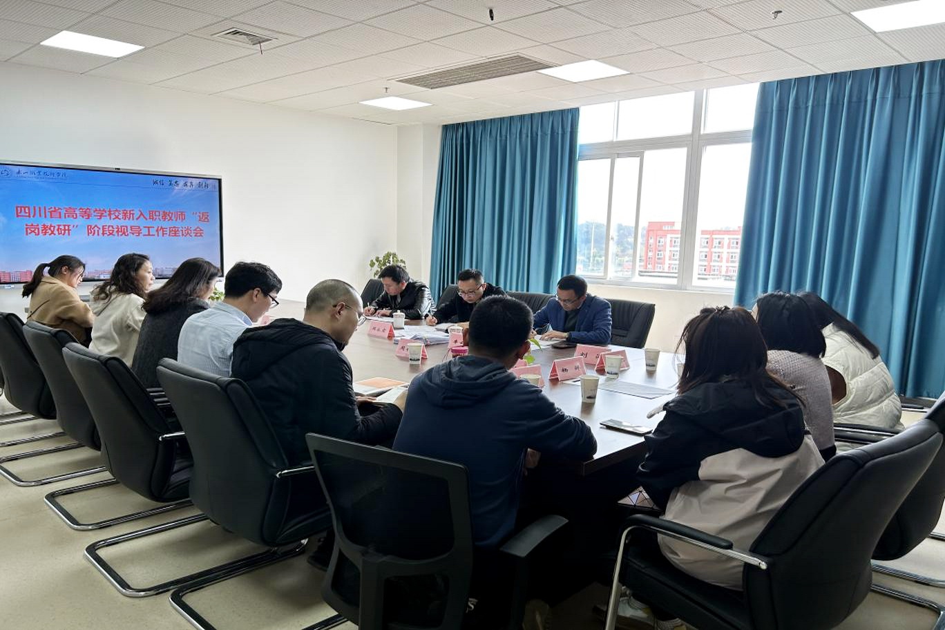 3月18日,西华师范大学高等职业技术师范学院副院长周永宏一行3人,到beat365开展2023年岗培教师“返岗教研”阶段视导工作并召开座谈会。学校党委委员、组织部部长武术,人事处相关负责人及新入职教师参加此次会议。