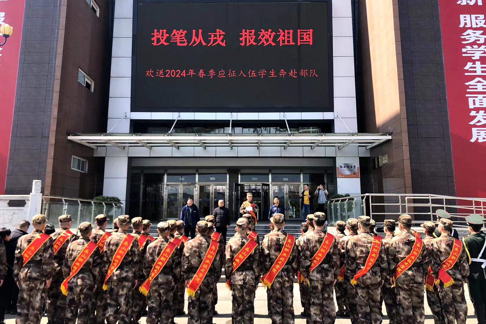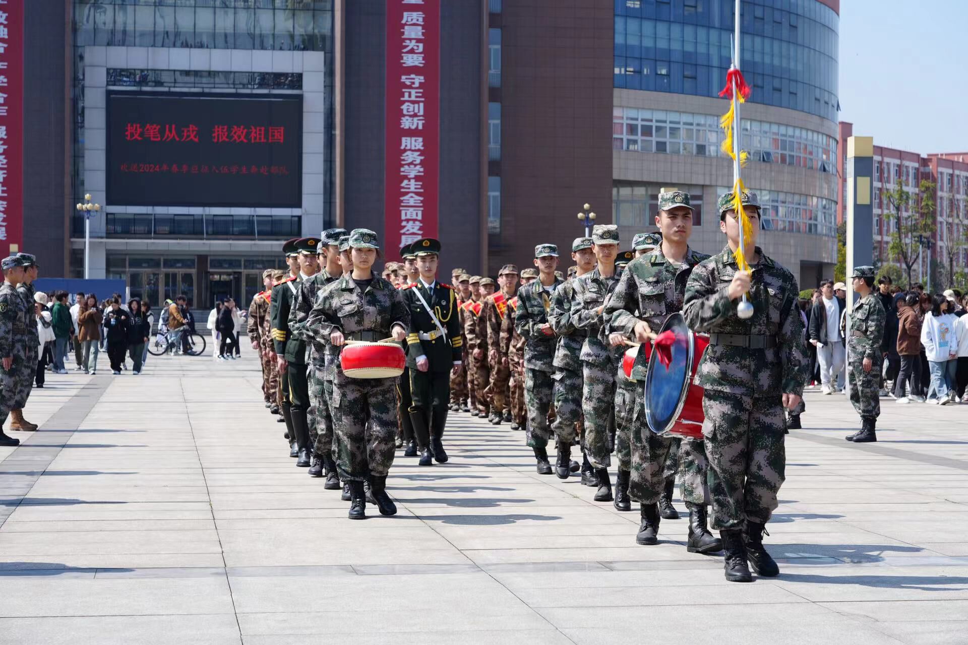 3月11日下午,学校在明德广场为2024年春季在校报名应征入伍的35名学生隆重举行欢送仪式,学校党委委员、副校长张学河出席仪式并讲话,部分家长代表、武装部工作人员、400余名师生代表及民兵连全体队员参加欢送仪式,欢送仪式由学校武装部长叶宏光主持。