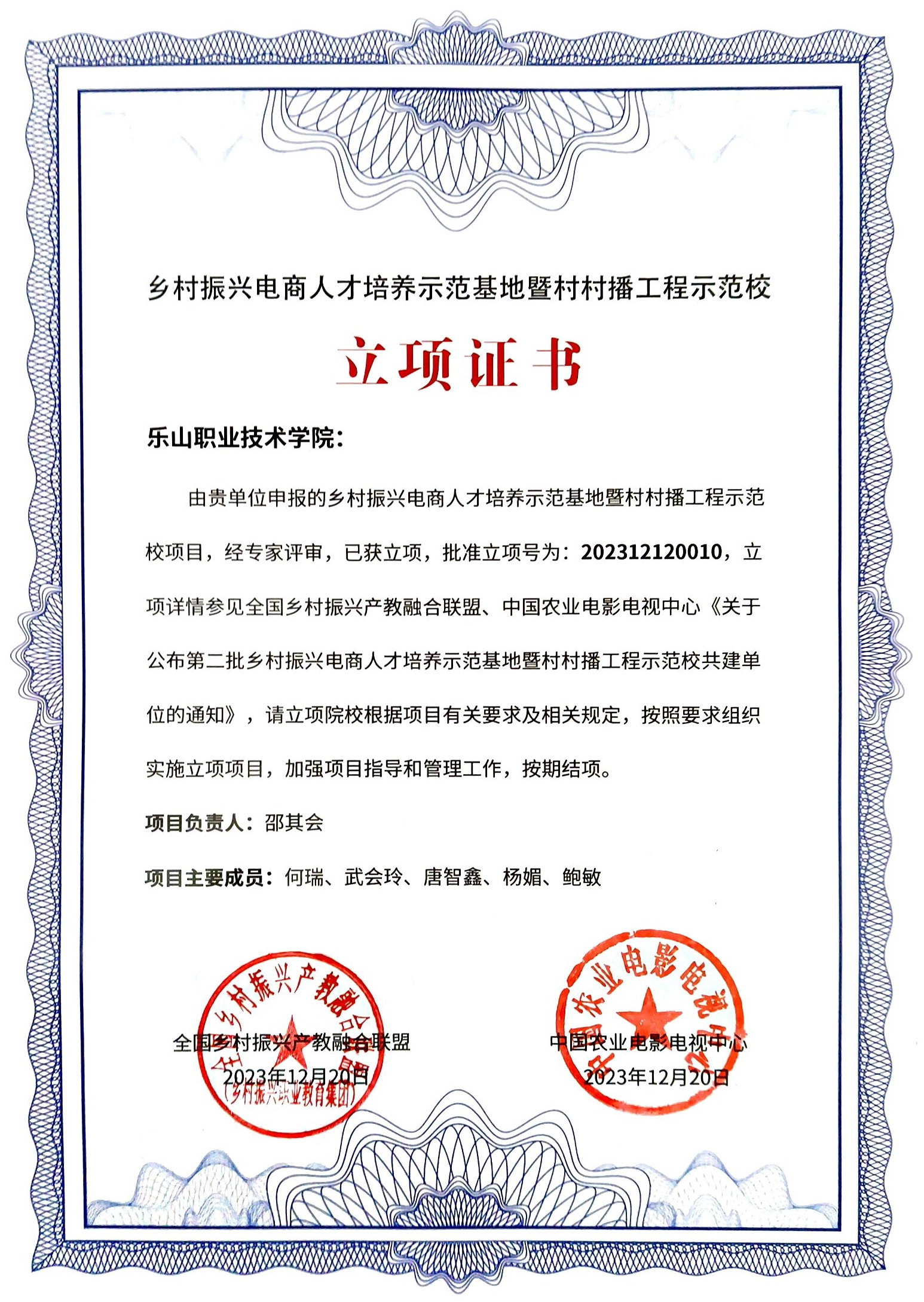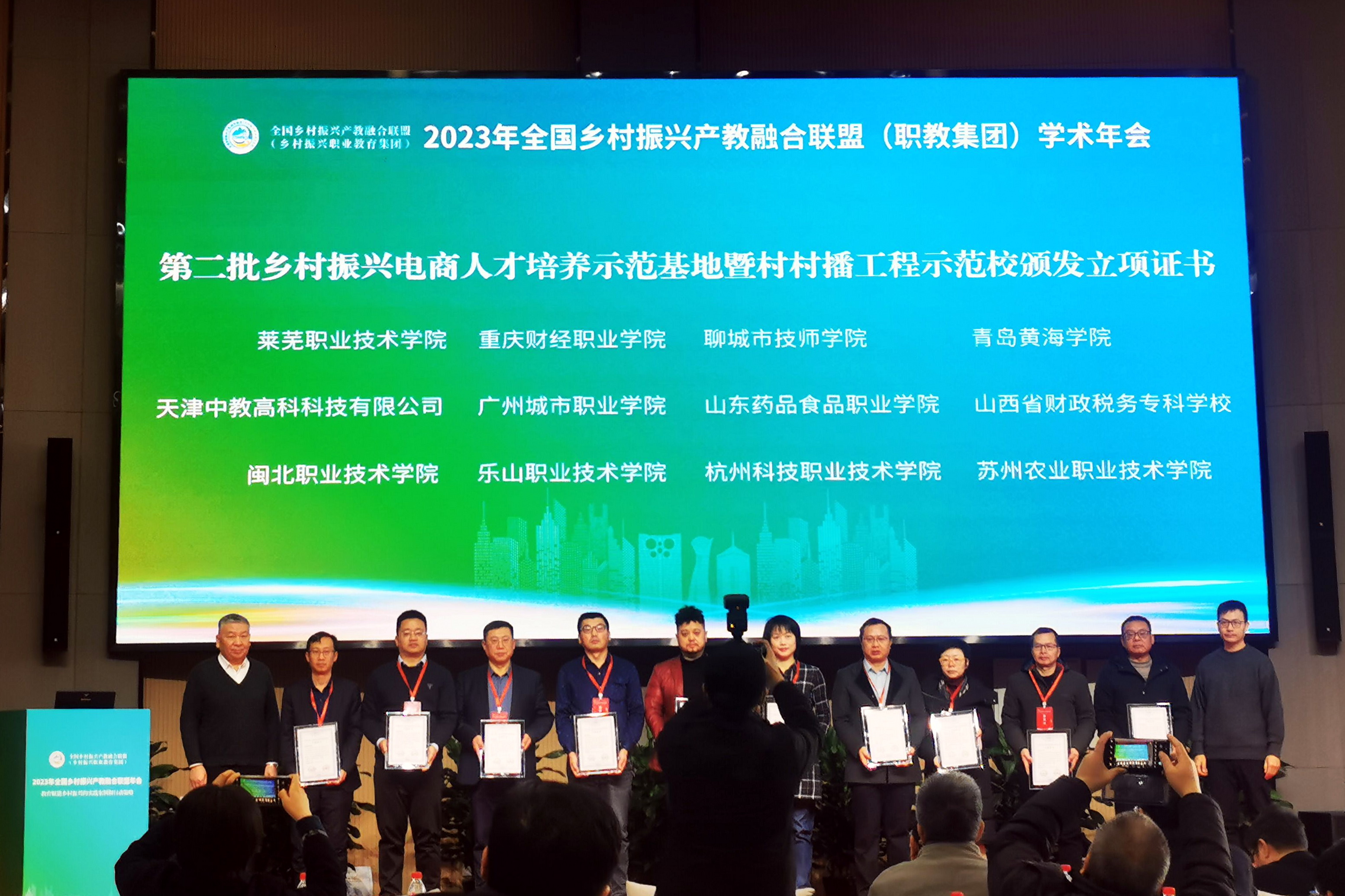 本次年会颁发了第二批乡村振兴电商人才培养示范基地暨村村播工程示范校立项证书。会前,联盟对第二批乡村振兴电商人才培养示范基地暨村村播工程示范校申报学校进行了实地考察、专家评审和答辩,beat365亚洲版官网成功申报立项。