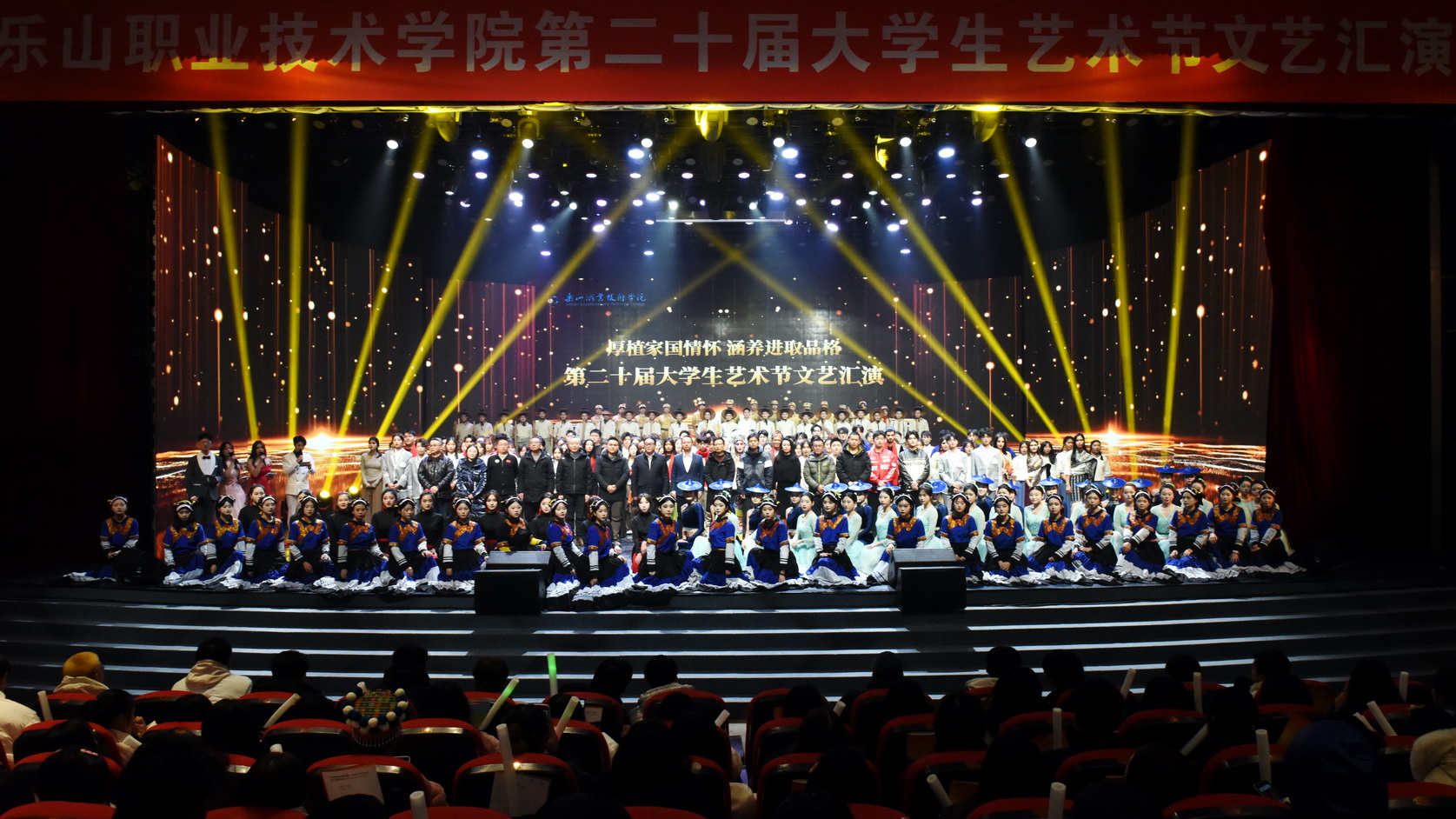12月20日晚,beat365亚洲版官网“厚植家国情怀,涵养进取品格”第二十届大学生艺术节文艺汇演在学院礼堂隆重上演。学校党委书记成定彬,党委副书记张佳,部分处(室)负责人、二级学院党总支书记、专职副书记及分团委书记,师生代表约1500人观看了演出。