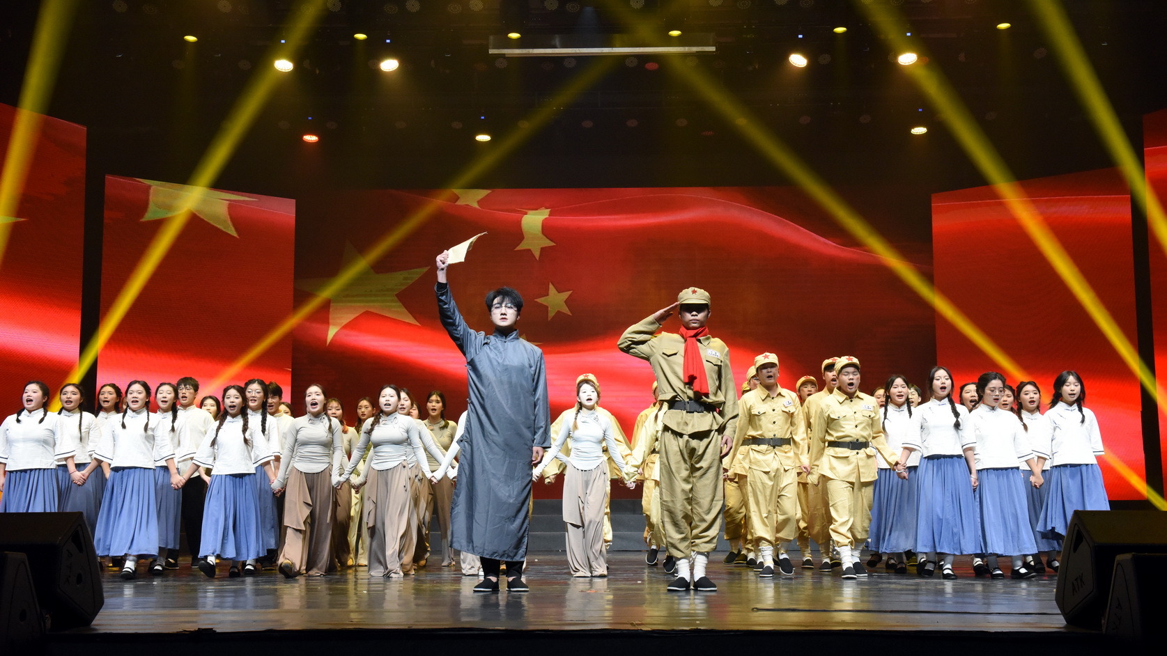 随后,广受同学们喜欢的歌曲《我们都有一个家》《破浪》,戏剧《光亮》,舞蹈《觉醒时代》|《小河淌水》《守护》等节目轮番上演。