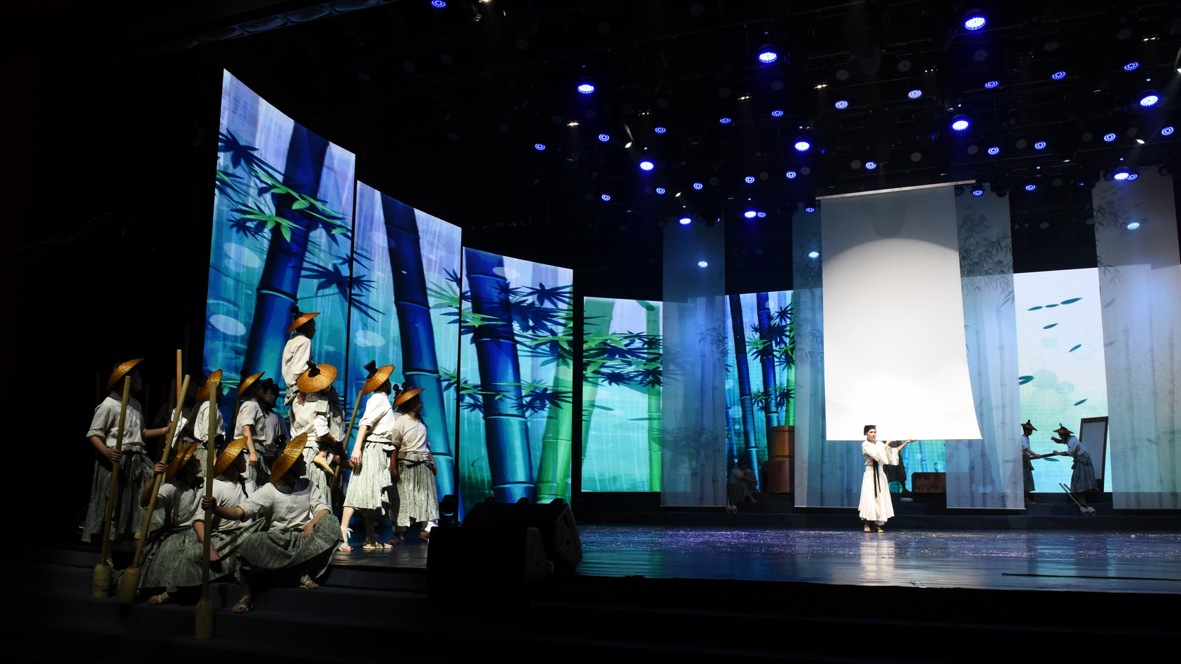 学校在四川省第十届大学生艺术展演活动中原创获奖的节目《春杵声声纸乡行》,以国家非物质文化遗产项目"夹江竹纸制作技艺"为素材,在铿锵有力的竹麻号子中,演绎了华夏儿女如竹般坚韧不屈的意志品格。