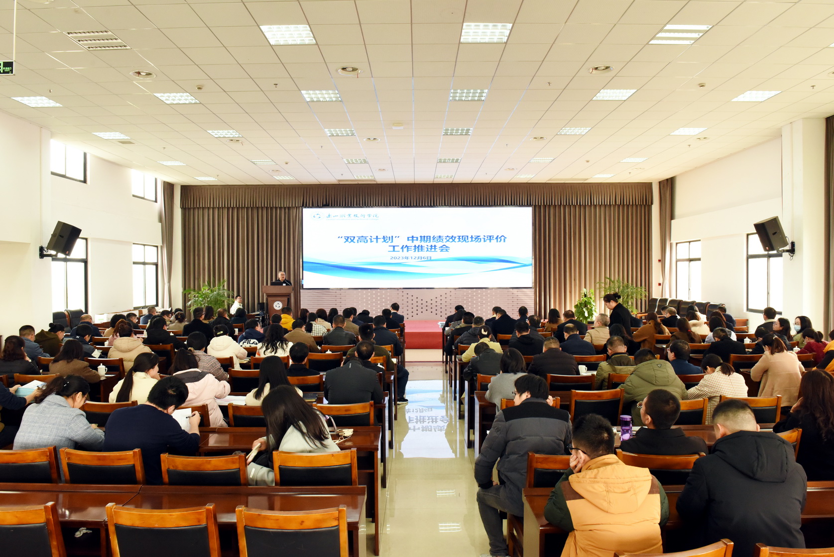 12月6日,beat365亚洲版官网省级“双高计划”中期绩效现场评价工作推进会在学术交流中心3004会议厅召开。学校领导、中层干部、各专业群及专业带头人、各教研室主任以及双高办相关人员参会,会议由党委委员、副校长张学河主持。