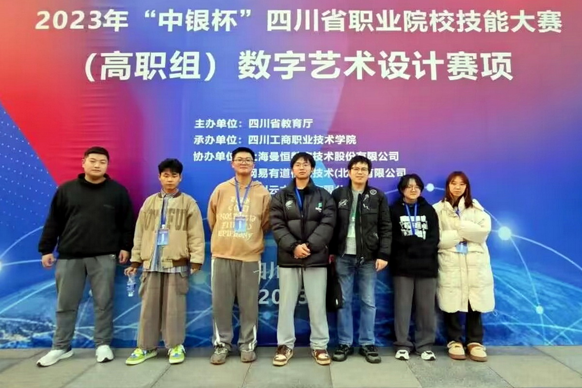 11月27日至29日,数字艺术设计赛项(高职组)在四川工商职业技术学院举行,在文化旅游学院詹恒、张雷、马世新及黄莹莹老师的指导下,影视动画专业学生张杨文锦、张恬逸、鲜志强、汪杰、刘家林、余柳靓6位同学分别组成两队参加比赛,获得二等奖和三等奖各1项,这是该专业首次参加此类赛事并获奖。数字艺术设计赛项比赛聚集了省内23所高职院校45支队伍参加,赛程时长达8小时,要求使用AI技术和三维技术进行建模、动画、引擎、剪辑几个部分制作,并根据赛题内容描述形成动画视频。整个赛程时间安排紧促,流程烦琐,对参赛选手具有较大的挑战。在近一个月的备赛训练中,6位同学积极探索,勤奋好学,克服技术难关,为比赛做好了较为充分的准备,最终在比赛中发挥稳定,获得佳绩。