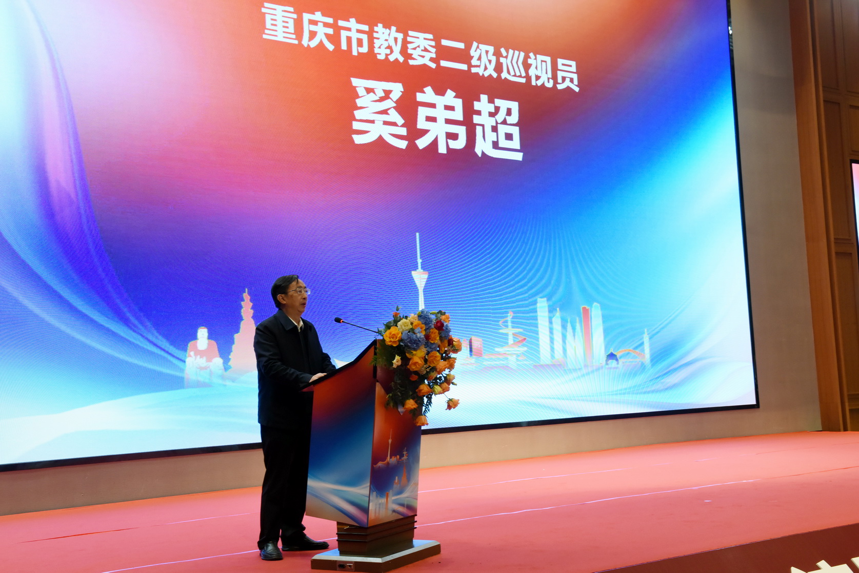 奚弟超代表重庆市委教育工委、重庆市教委,对成立大会的顺利举办表示衷心祝贺,他强调要充分发挥成渝地区红色文化资源的教育功能,充分释放红色文化资源禀赋的教育效应,让青年学生产生情感共鸣、思想认同,是培养愿意扎根成渝地区双城经济圈的改革创新者与时代建设者的重要育人实践方式。要坚守课堂教学主渠道,丰富教学素材;要站稳红色资源主阵地,创新实践路径;要唱响红色文化主旋律,赓续红色基因。期待以本次成立大会为契机,共同助力成渝地区双城经济圈红色文化弘扬与繁荣,共同打造具有成渝辨识度的、在全国具有相当影响力的红色文化教育共同体。