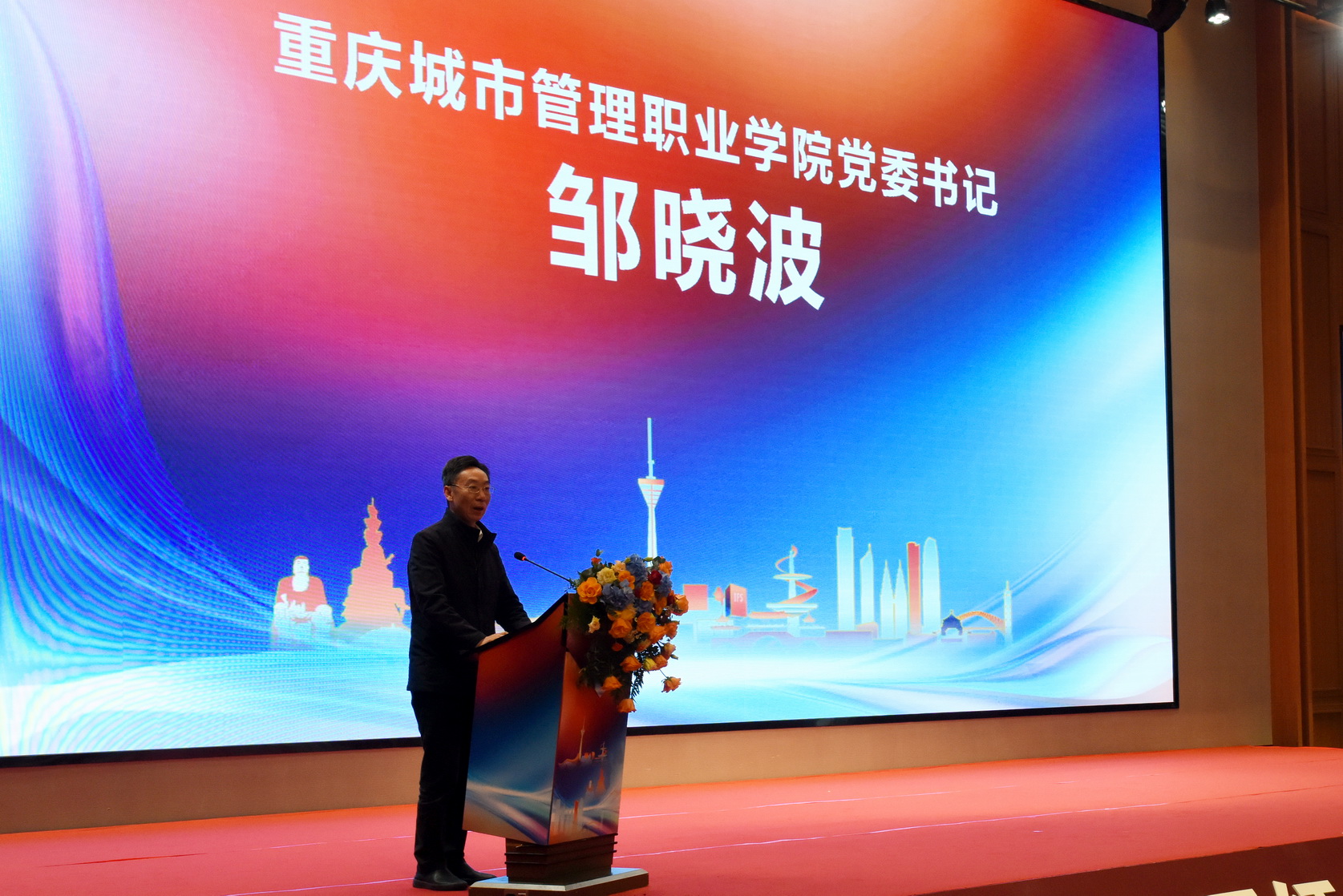 11月16日,成渝地区双城经济圈红色文化教育共同体成立大会暨首届川渝红色文化教育论坛在四川省乐山市举行,四川省教育厅一级巡视员胡卫锋、重庆市教委二级巡视员奚弟超出席会议,来自川渝两地38所高职院校、夹江909基地、乐山郭沫若纪念馆、乐山市中区县街社区、成都洛可可设计有限公司等企事业单位的200余名代表参加会议。会议由beat365亚洲版官网院长刘忠主持。