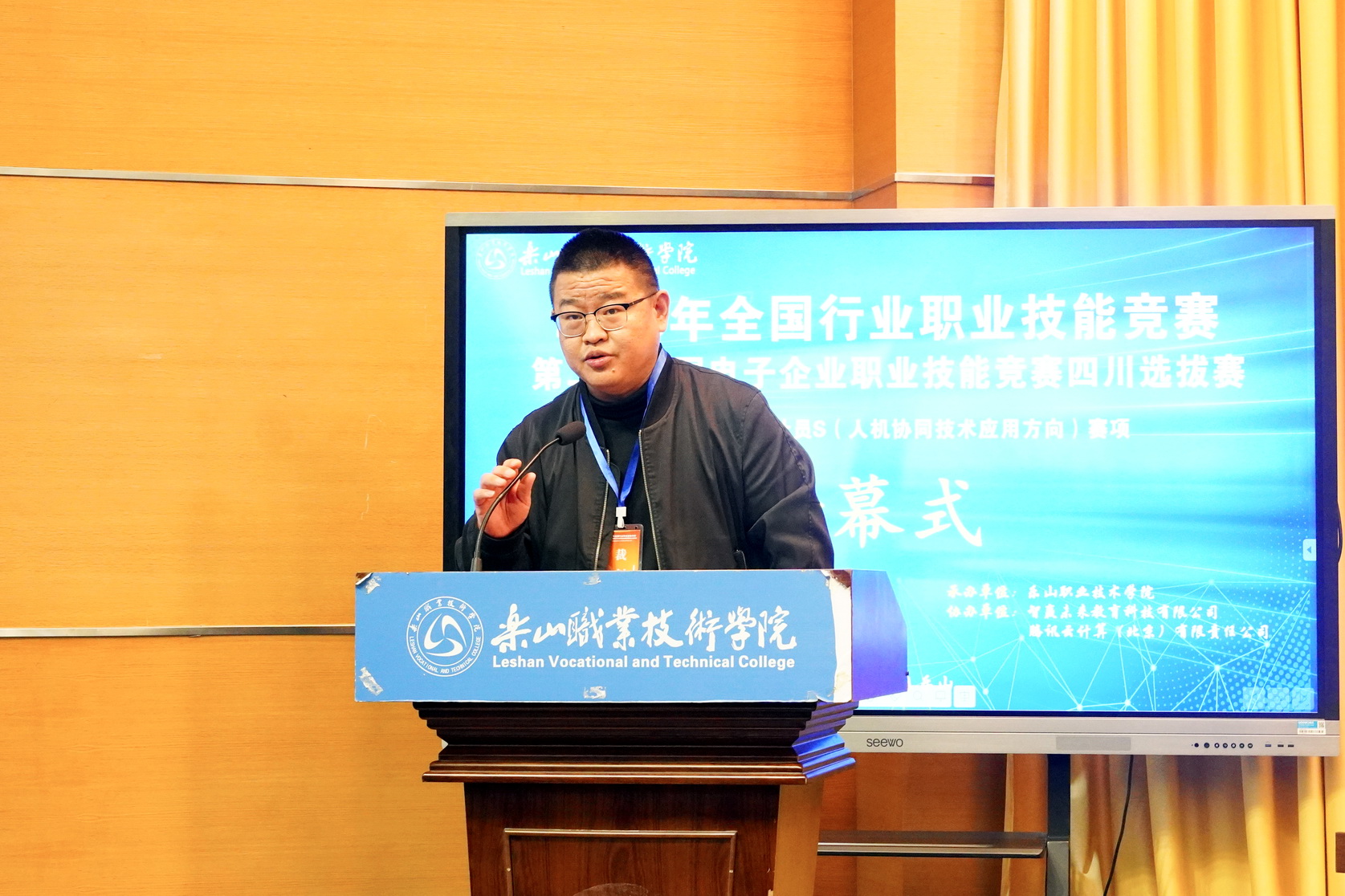2023年11月11日上午,第二届全国电子企业职业技能竞赛四川选拔赛的计算机程序设计员S(人机协同技术应用方向)赛项在beat365亚洲版官网隆重开幕。中国电子企业协会秘书长曾继新,四川省计算机学会秘书长宋昌元,中国职业技术教育学会数字化工作委员会副秘书长王新强,beat365亚洲版官网校长刘忠,校党委委员、纪委书记李昌贵等领导和专家出席了开幕式。