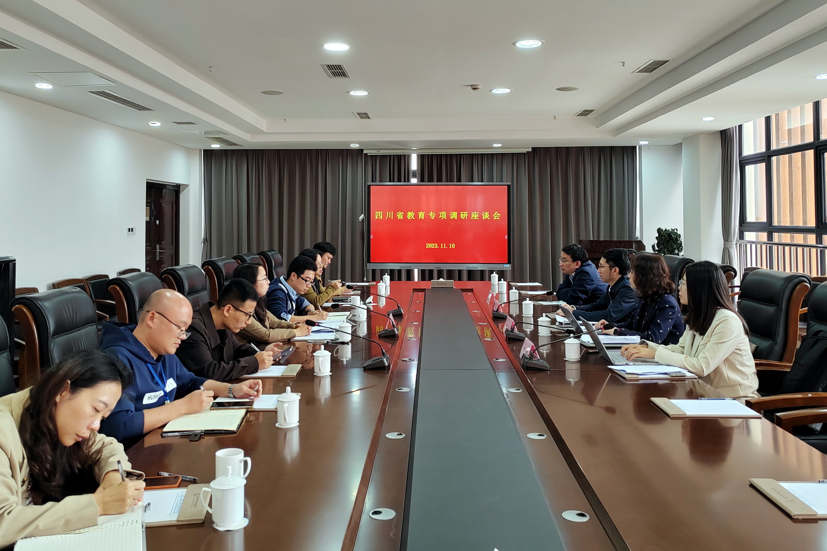 11月10日上午,四川省教育厅教育专项调研组一行4人来校开展调研工作,调研座谈会在学术交流中心2001会议室进行。学校党委委员、副校长周芹,党政办、发展规划处、教务处、人事处、科技处、学工部负责人及辅导员代表参加座谈会,周芹主持会议。