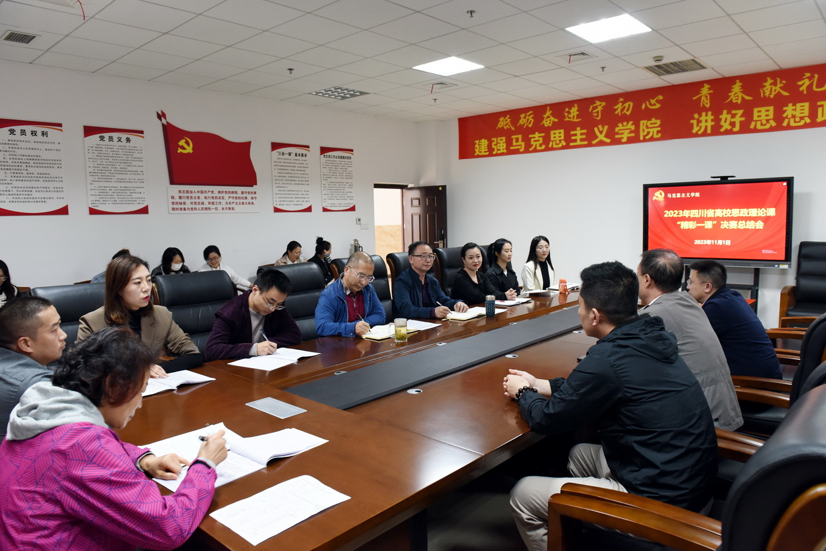 2023年11月1日下午,beat365亚洲版官网马克思主义学院在教研楼410会议室召开2023年四川省高校中青年教师“精彩一课”讲课比赛总结会,校长刘忠出席会议,党委宣传部(统战部)负责人,党政办和宣传部相关人员,马院全体教职工参会。马院主持工作副院长徐志红主持会议。
