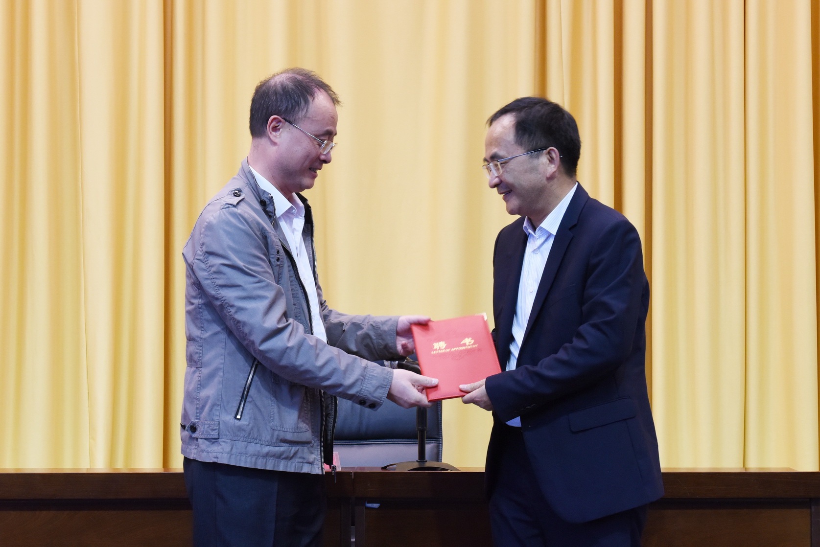 讲座开始前,刘忠代表学校为罗大佺颁发了客座教授聘书。