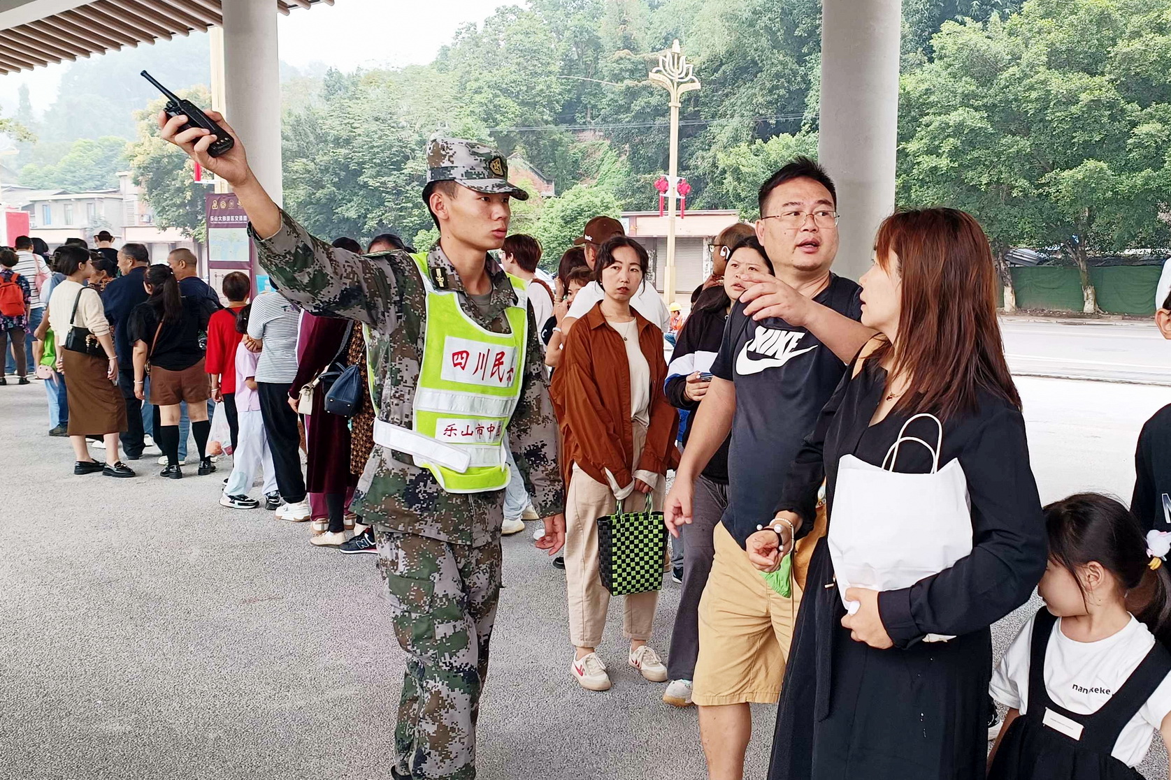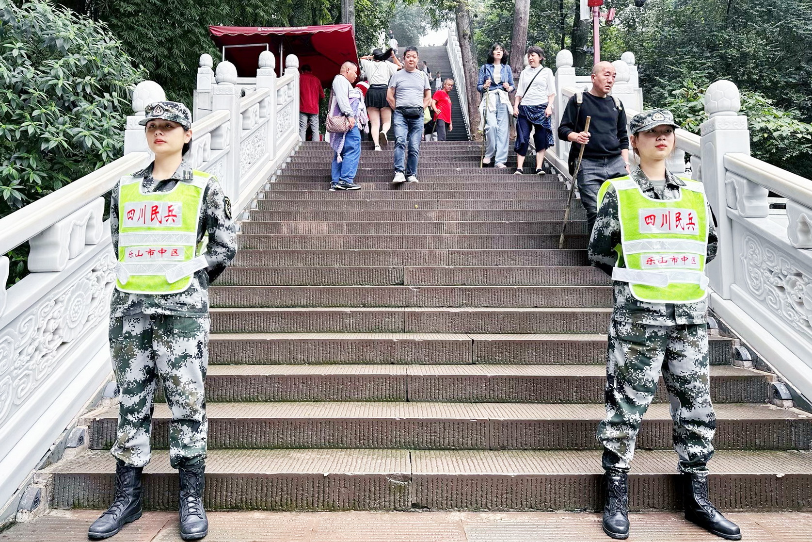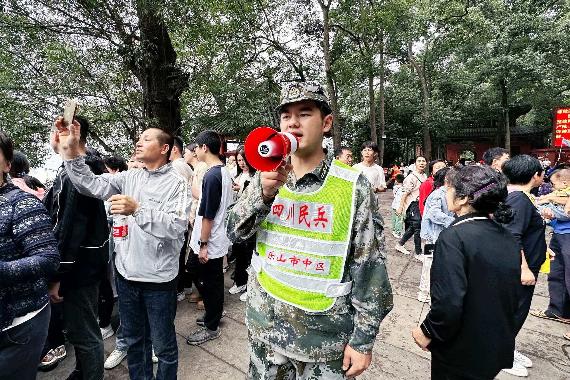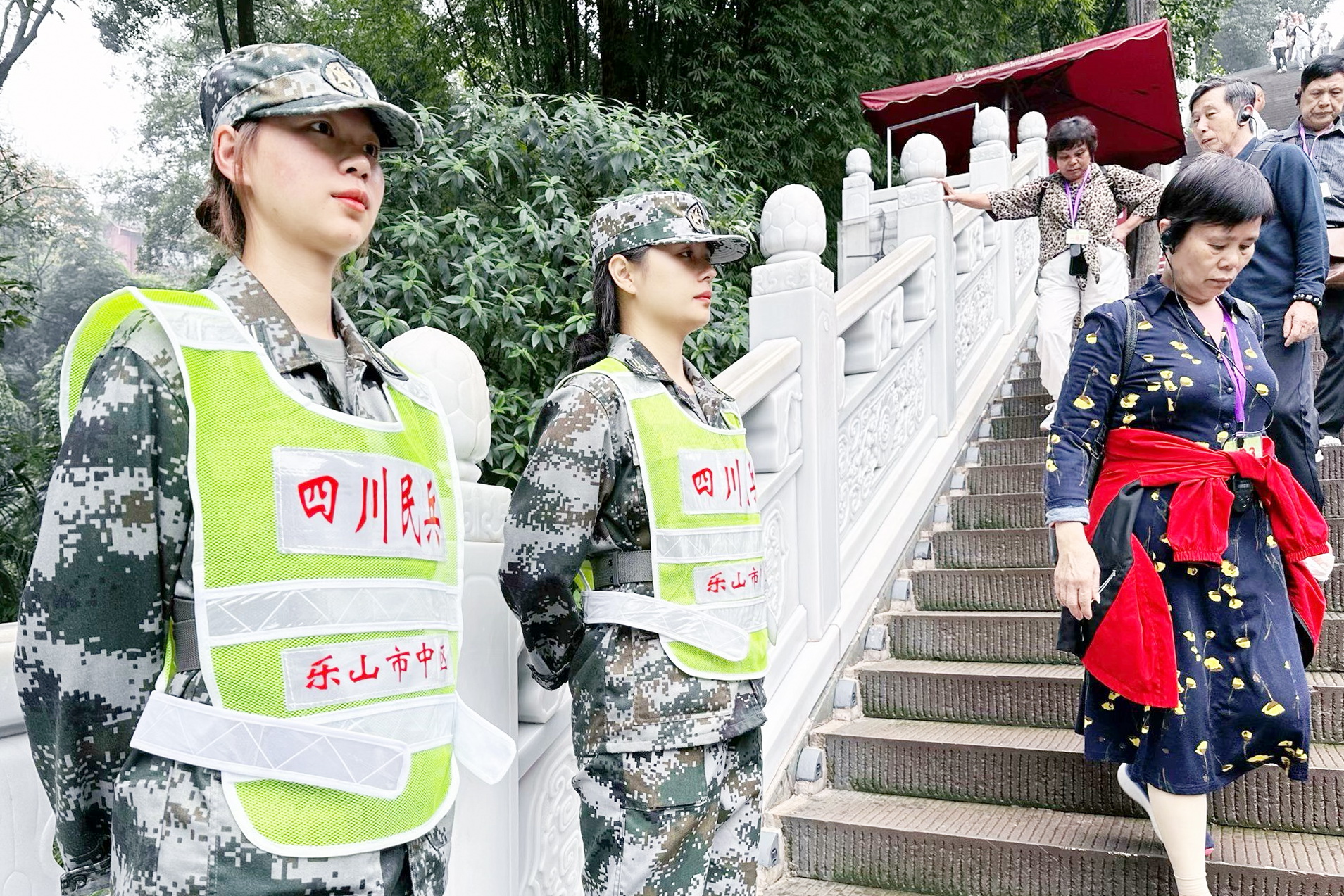 受乐山市中区武装部指派,beat365预备役民兵连51名民兵参加“国庆黄金周”大佛景区联合执勤,全力协助相关部门完成景区治安管控及其他综合勤务。