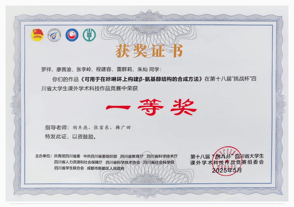 5月24日—5月26日由共青团四川省委、中共四川省委组织部、四川省教育厅、四川省科学技术厅、四川省人力资源和社会保障厅、四川省科学技术协会、四川省社会科学院、四川省学生联合会、成都市新都区人民政府主办的第十八届“挑战杯”四川省大学生课外学术科技作品竞赛在成都医学院举办。beat365在本次竞赛中荣获一等奖1项、二等奖2项、三等奖8项。