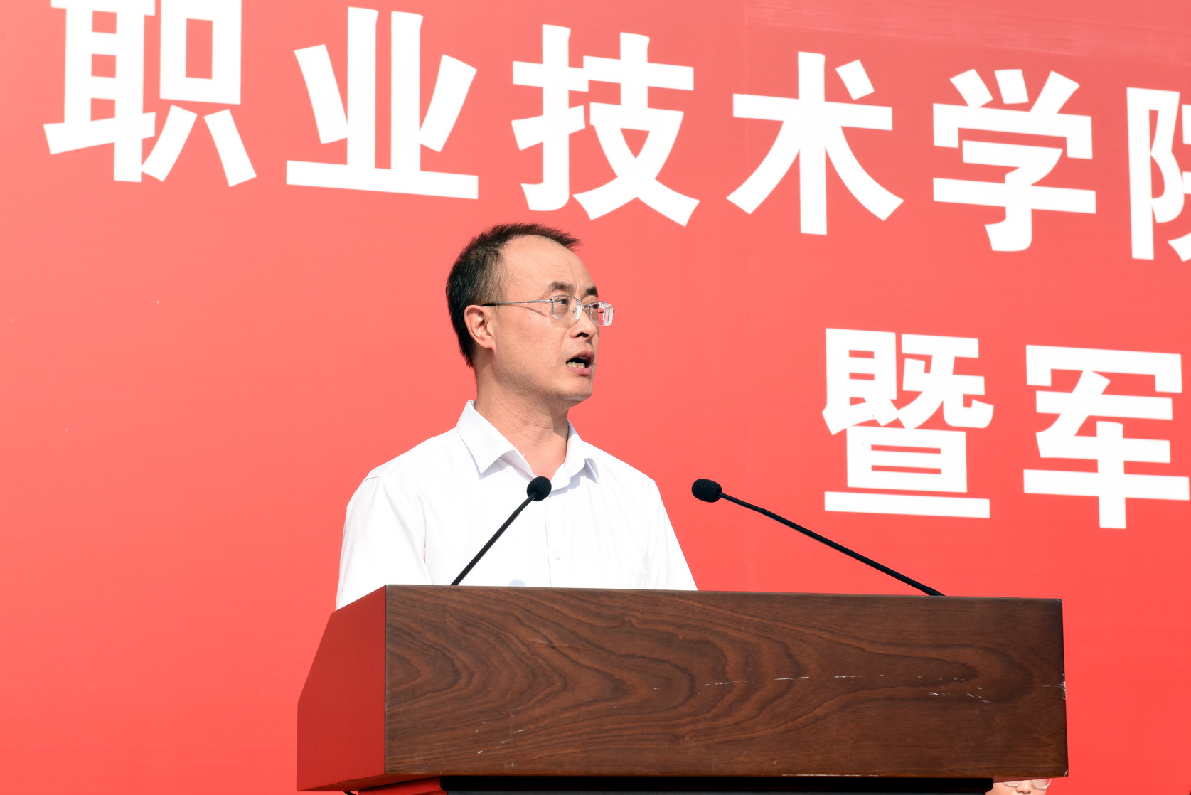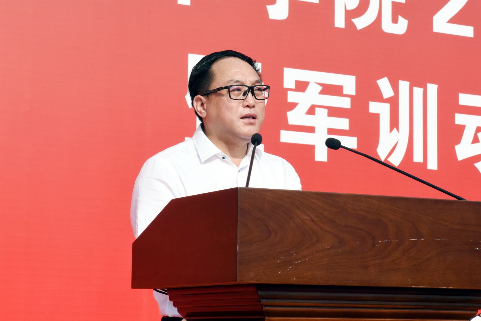 学校党委书记成定彬为同学们作“开学第一课”报告暨军训动员讲话,他要求同学们对即将开始的军训,要提高认识,居安思危,牢固树立保家卫国的家国情怀;要服从命令,听从指挥,牢固树立令行禁止的纪律意识;要端正态度,自立自强,牢固树立互帮互助的团队意识。希望同学们在未来三年的学习中,抓住难得机遇,珍惜美好时光,不负韶华、不负时代、不负青春,要珍惜大学时光,千方百计获取丰富的知识,掌握高超的实用技能,养成优良的品格,多读书、多运动、多钻研,为放飞梦想打下坚实基础。
