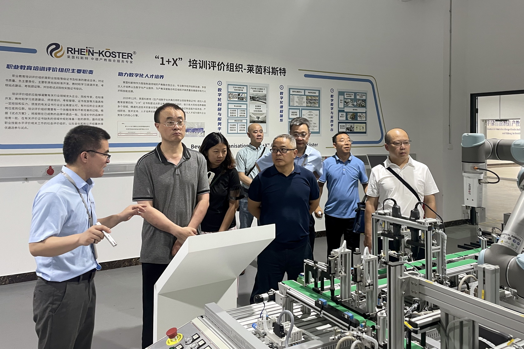 刘忠一行参观考察了莱茵科斯特的中德数字经济暨智能制造赋能中心、中德智能制造产教融合(双跨)培训中心、中德智能装备研发制造中心、中德智能制造技术公共实训基地等,听取了企业围绕工业互联网、数字化等领域开展人才培养、产教融合等方面的介绍,并进行了座谈交流。