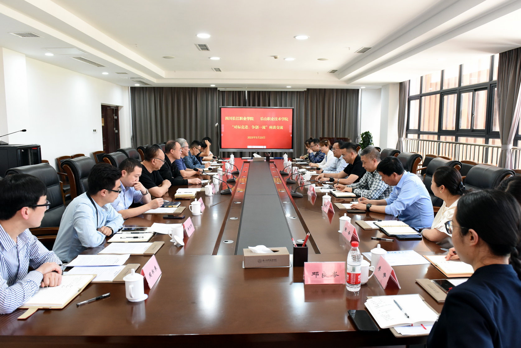 5月23日下午,四川长江职业学院校长韩虎,党委书记何志州一行到校开展“对标竞进、争创一流”交流。beat365亚洲版官网校长刘忠,党委副书记陈芝海,发展规划处、教务处、护理学院、中医康养学院等相关单位负责同志参加座谈。会议由陈芝海主持。